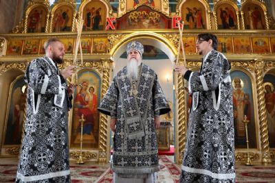 Архипастырю сослужили клирики собора, песнопения исполнял архиерейский хор.