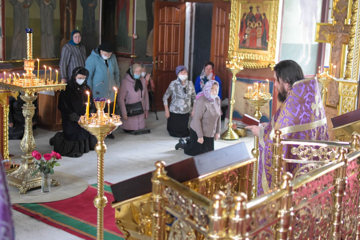 За Божественной литургией читались отрывки из книги Исход (2 глава) о бегстве Моисея в землю Мадиамскую, из книги Иова (2 глава) о страданиях праведного Иова и из Евангелия от Матфея (26 глава) о помазании Господа Иисуса благовонным миром в Вифании.