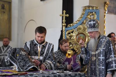 Его Преосвященству сослужили клирики собора, песнопения исполнял малый состав архиерейского хора под управлением Тимофея Протасова.