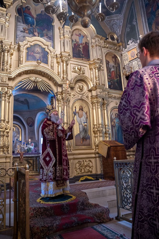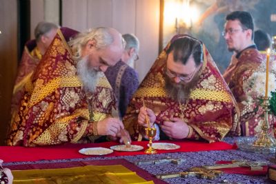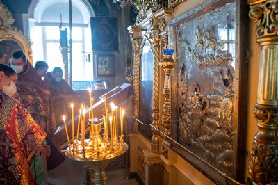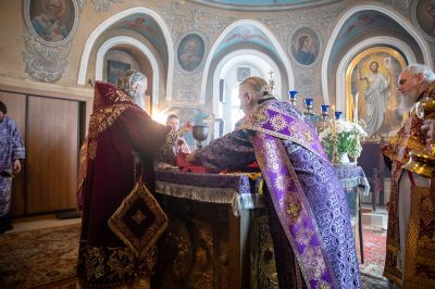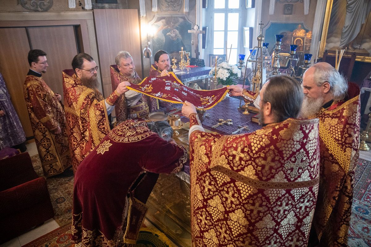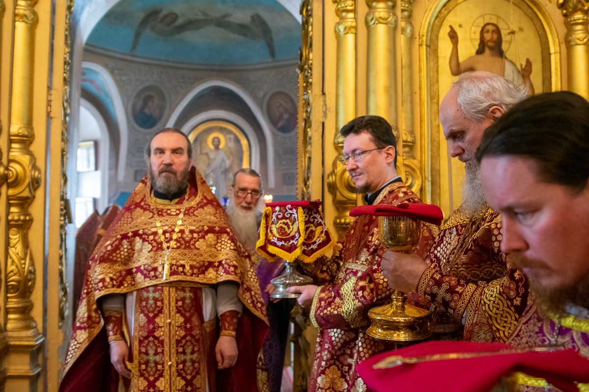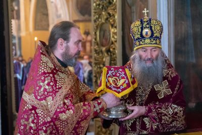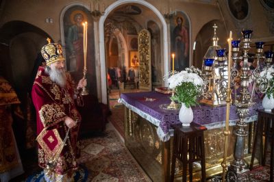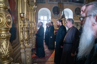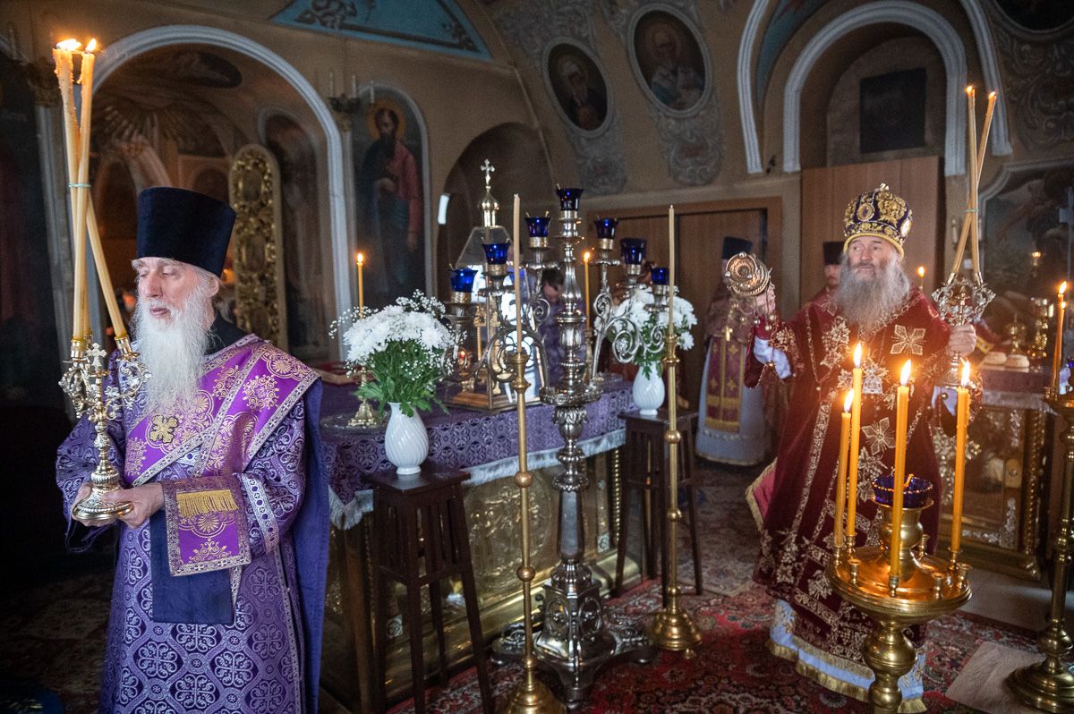 Архипастырю сослужили секретарь епархиального управления иеромонах Серафим (Пасанаев), ключарь храма протоиерей Михаил Ильин, протодиакон Михаил Козловский и клирики храма. Песнопения исполнял хор храма.