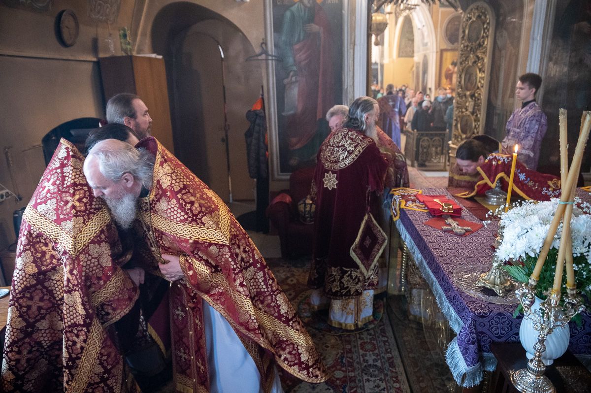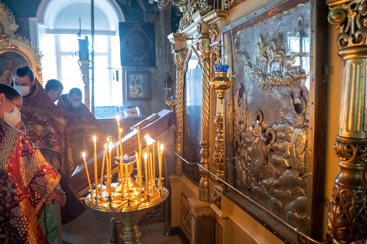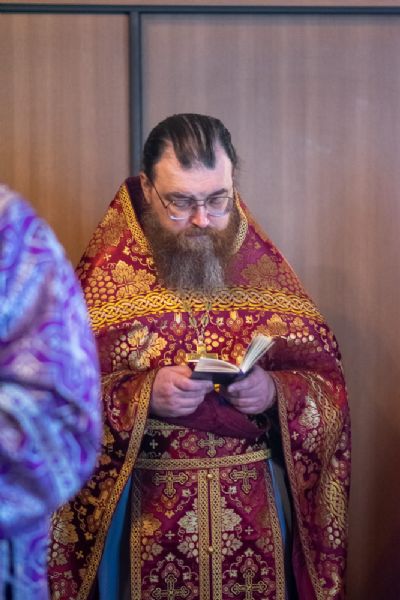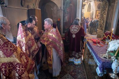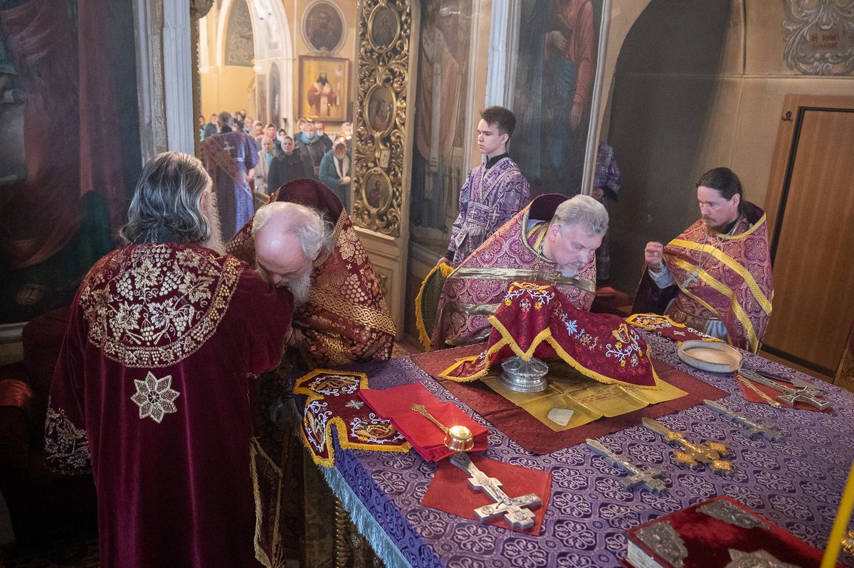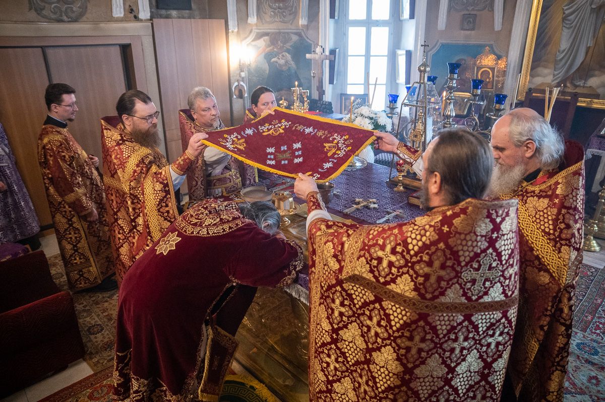 Архипастырю сослужили секретарь епархиального управления иеромонах Серафим (Пасанаев), ключарь храма протоиерей Михаил Ильин, протодиакон Михаил Козловский и клирики храма. Песнопения исполнял хор храма.