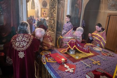По традиции, на Литургии Великого Четверга были заготовлены запасные Святые Дары на год, которые используются для причащения во внебогослужебное время.