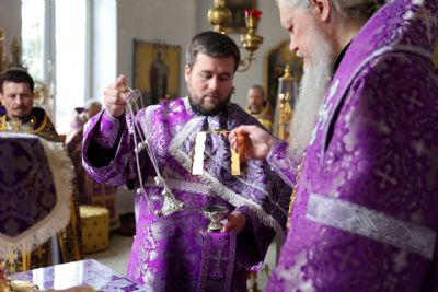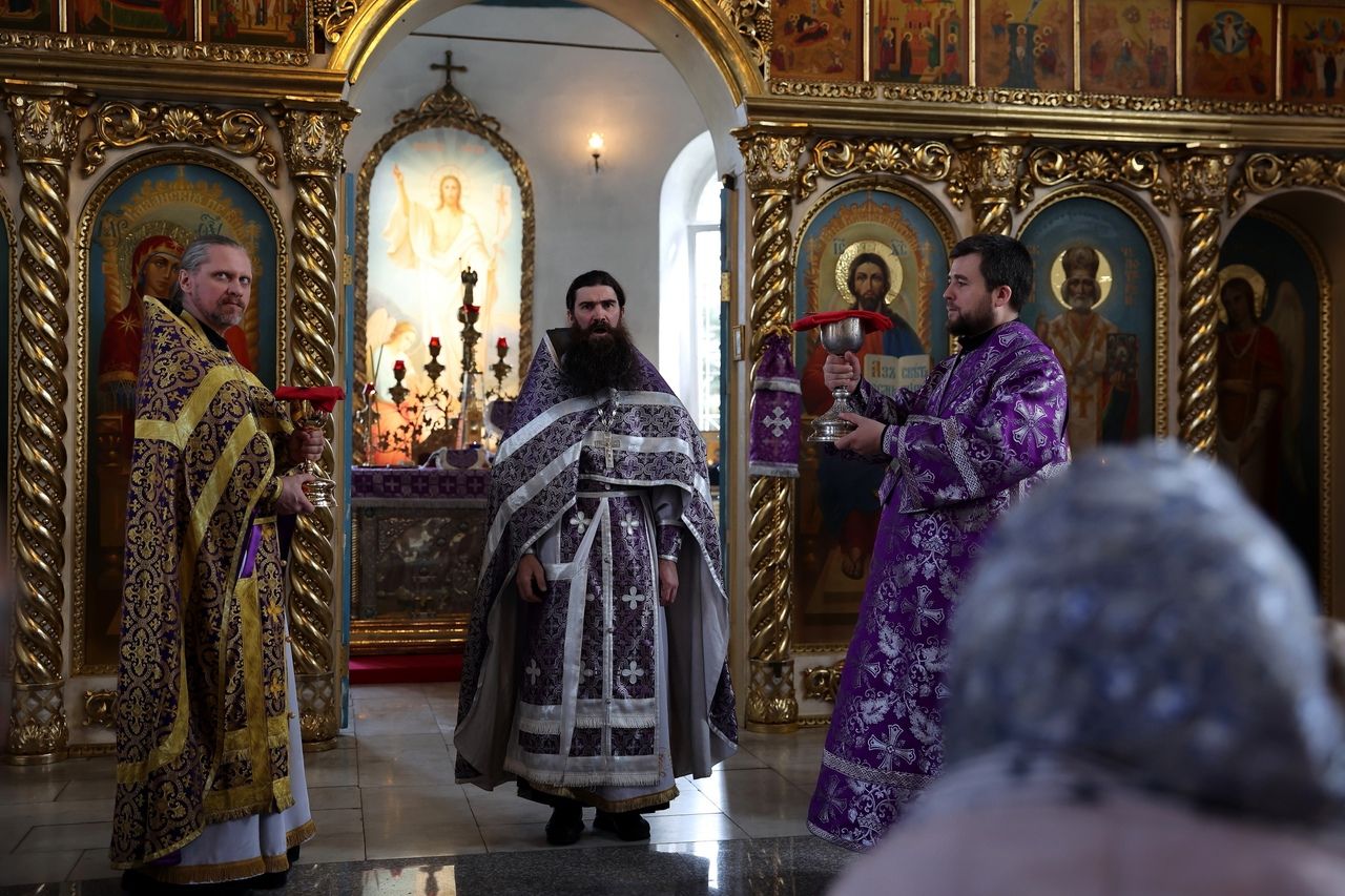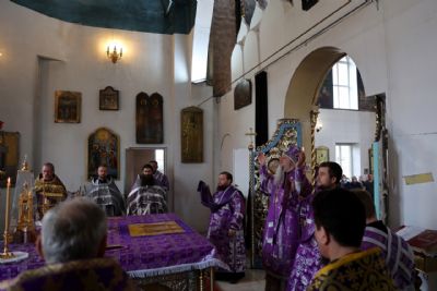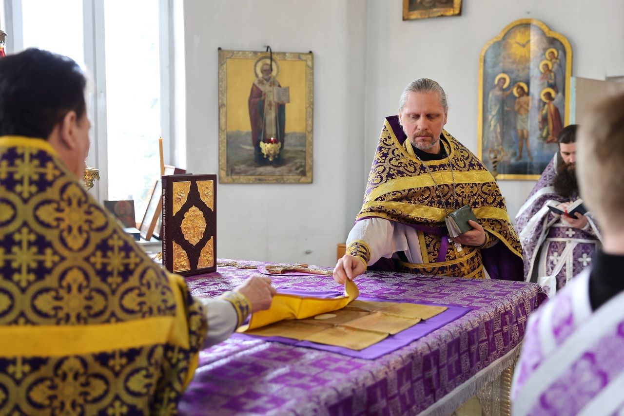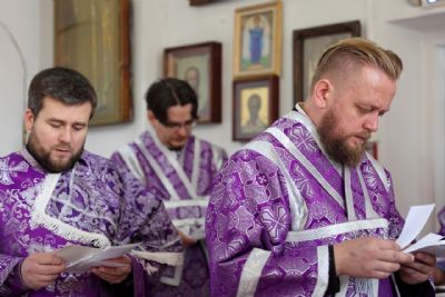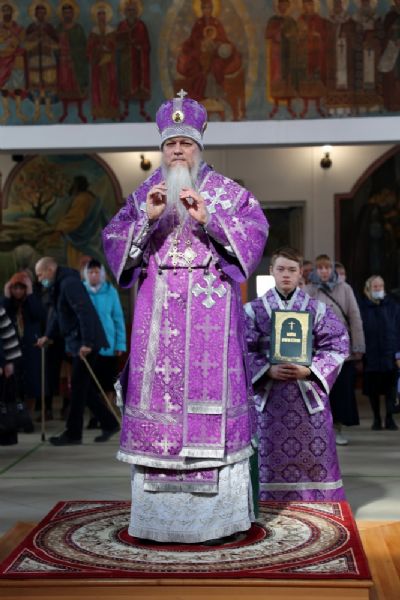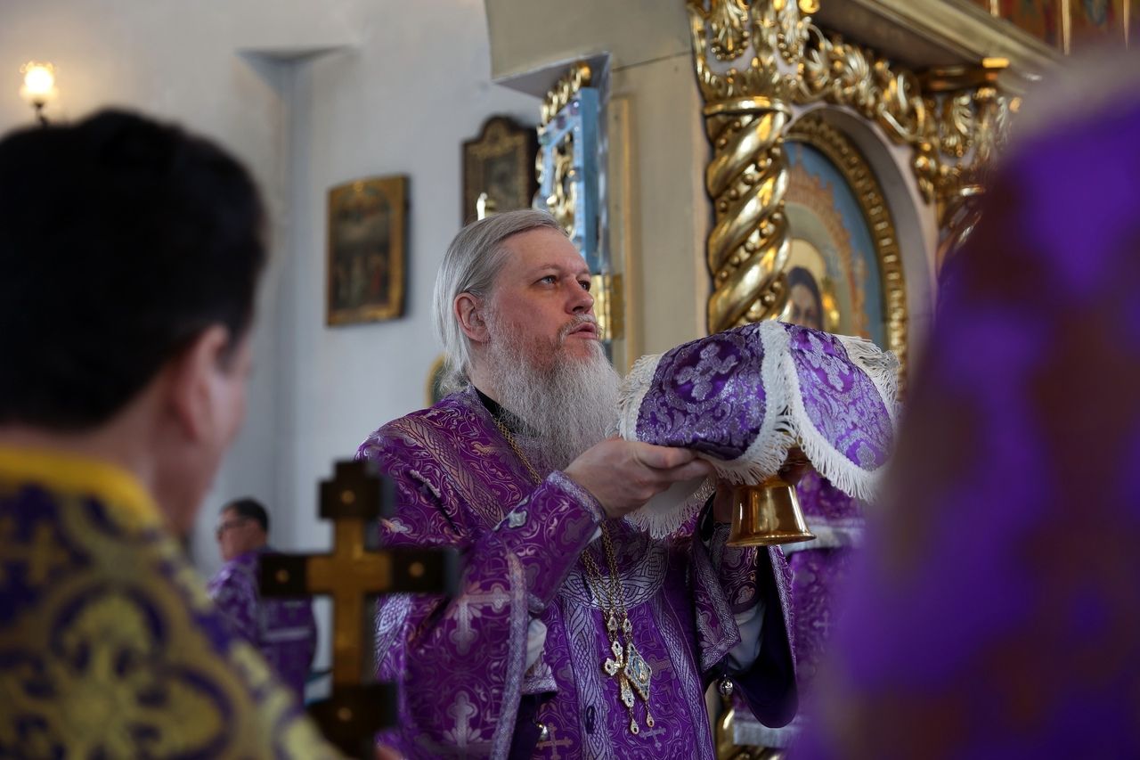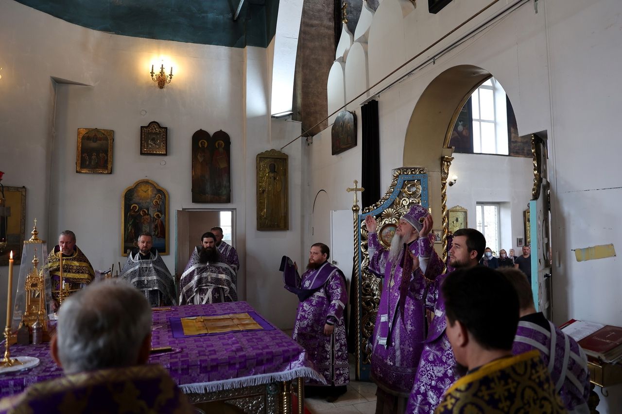 Архипастырю сослужили клирики собора, песнопения исполнял архиерейский хор.