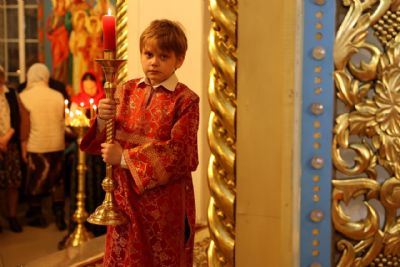 В полночь при пении стихиры «Воскресение Твое, Христе Спасе…» духовенство и верующие совершили крестный ход вокруг Никольского собора.
