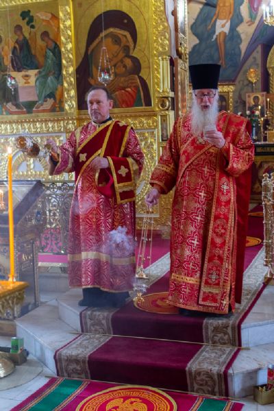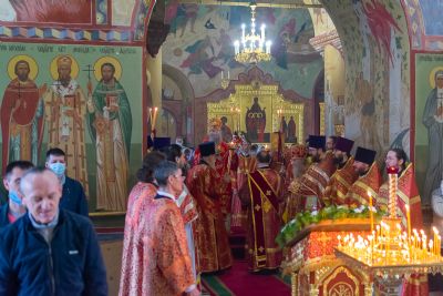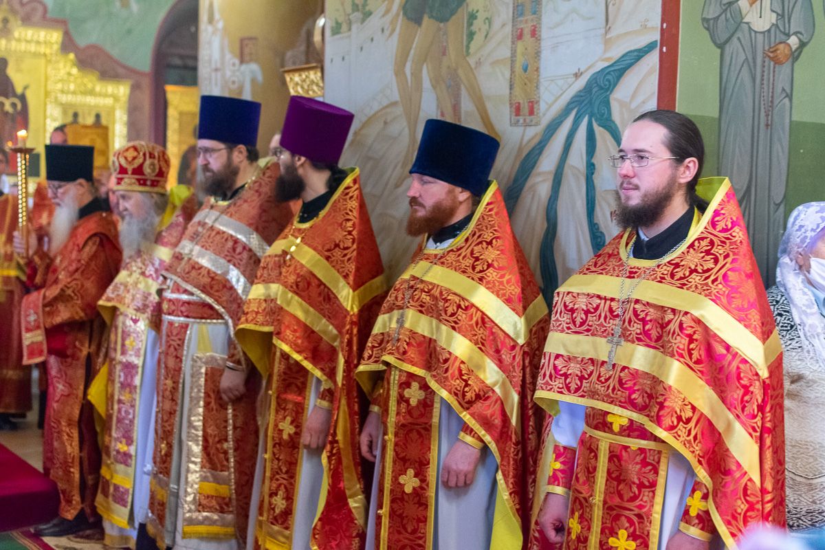 Его Высокопреосвященству сослужили секретарь Йошкар-Олинского епархиального управления иеромонах Серафим Пасанаев, благочинный Йошкар-Олинского церковного округа протоиерей Андрей Норкин, настоятель Вознесенского собора митрофорный протоиерей Евгений Кутырев, протодиакон Михаил Козловский и клирики Вознесенского собора. Пел хор собора под управлением Ангелины Бабиной.