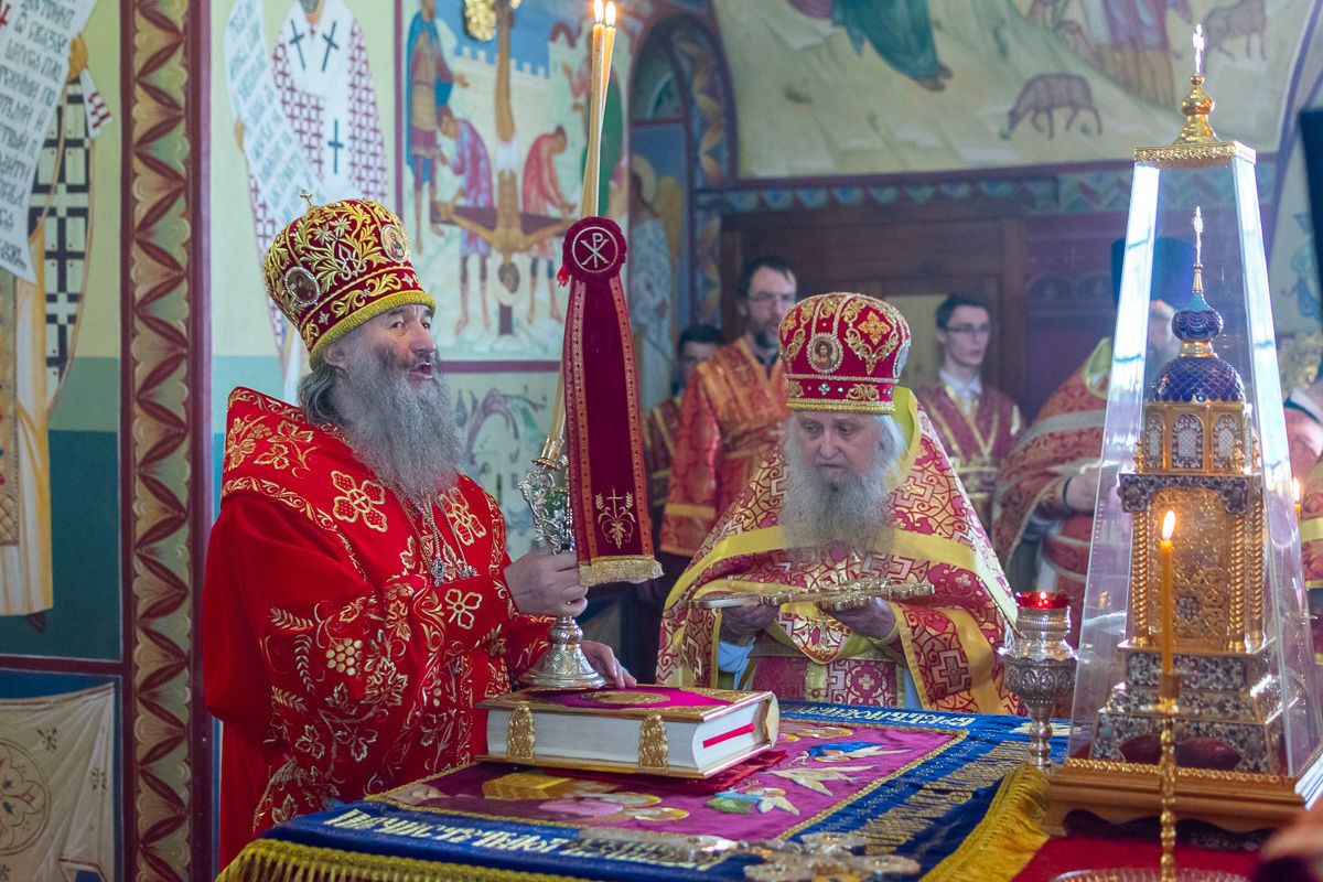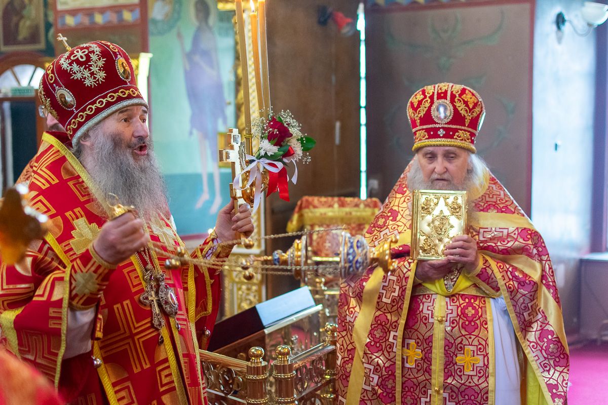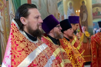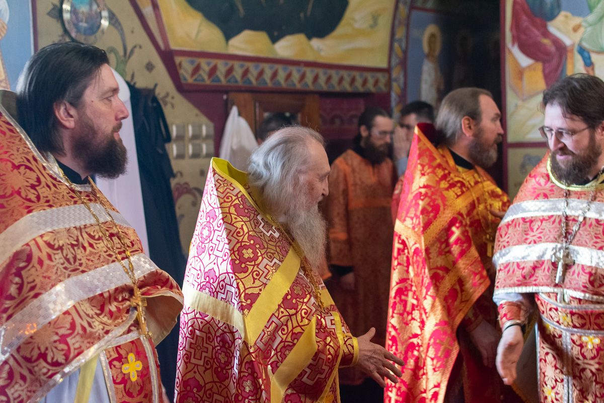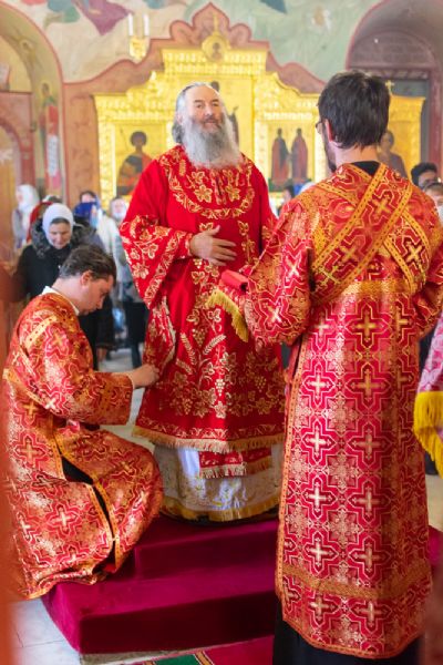 Богослужение началось торжественной встречей митрополита Иоанна и облачением в центре собора.