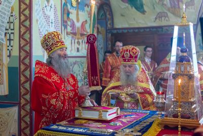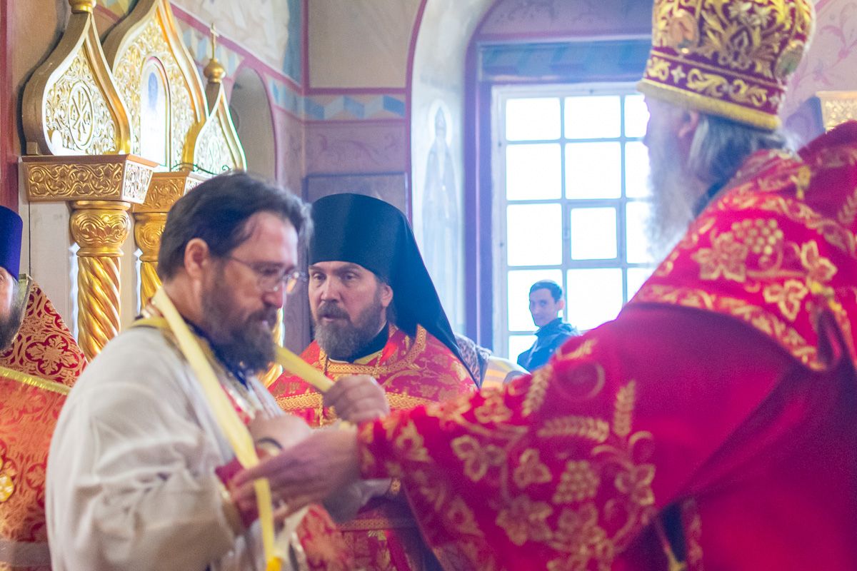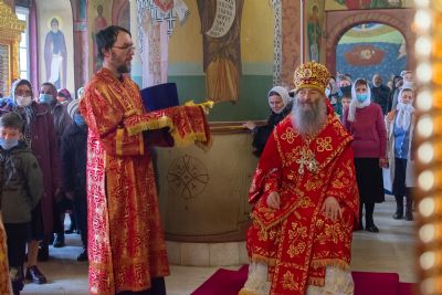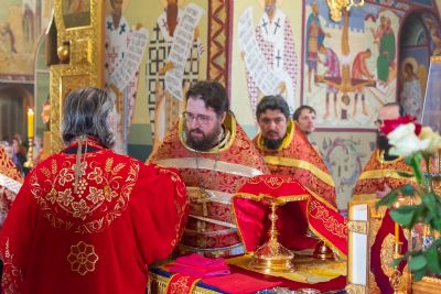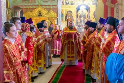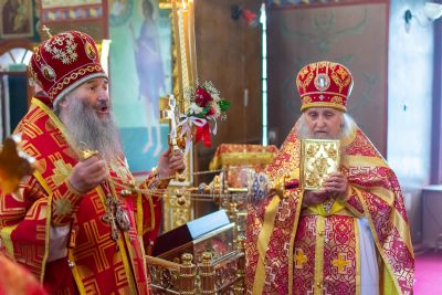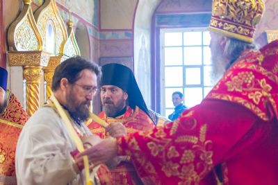 На малом входе митрополит Иоанн вручил богослужебно-иерархические награды клирик Вознесенского собора иерей Владимир Глебов удостоен права ношения палицы; клирик храма Рождества Христова с. Семеновка Димитрий Иванов награжден наперсным крестом; клирики Вознесенского собора иерей Димитрий Копылов – камилавкой; иерей Игорь Лебедев – набедренником.
