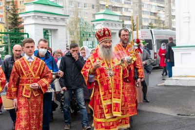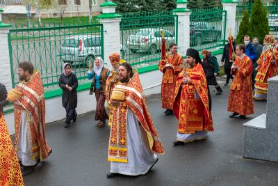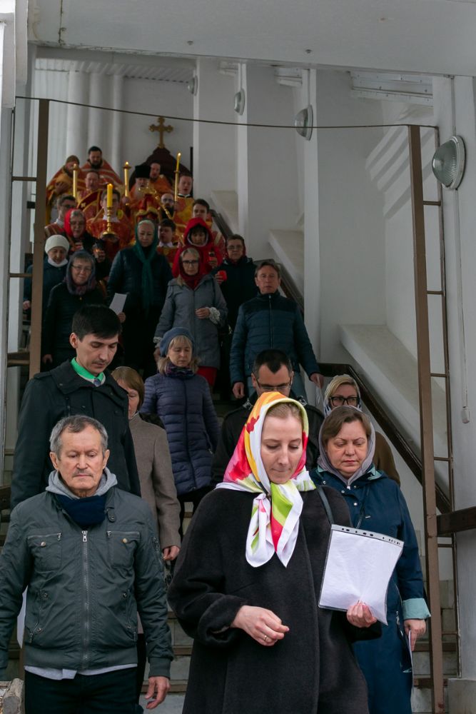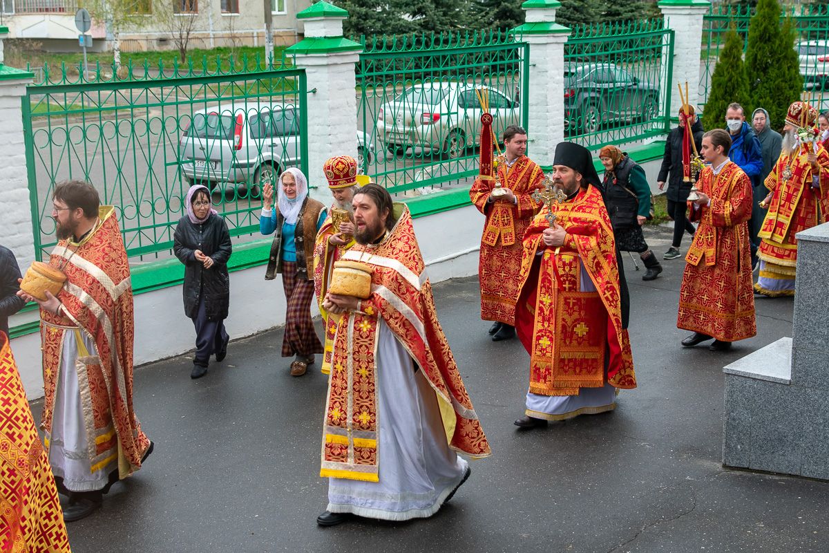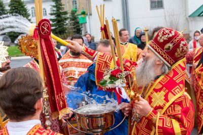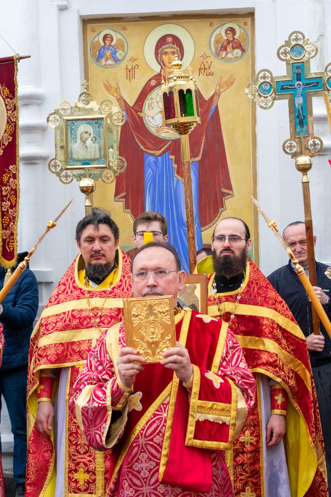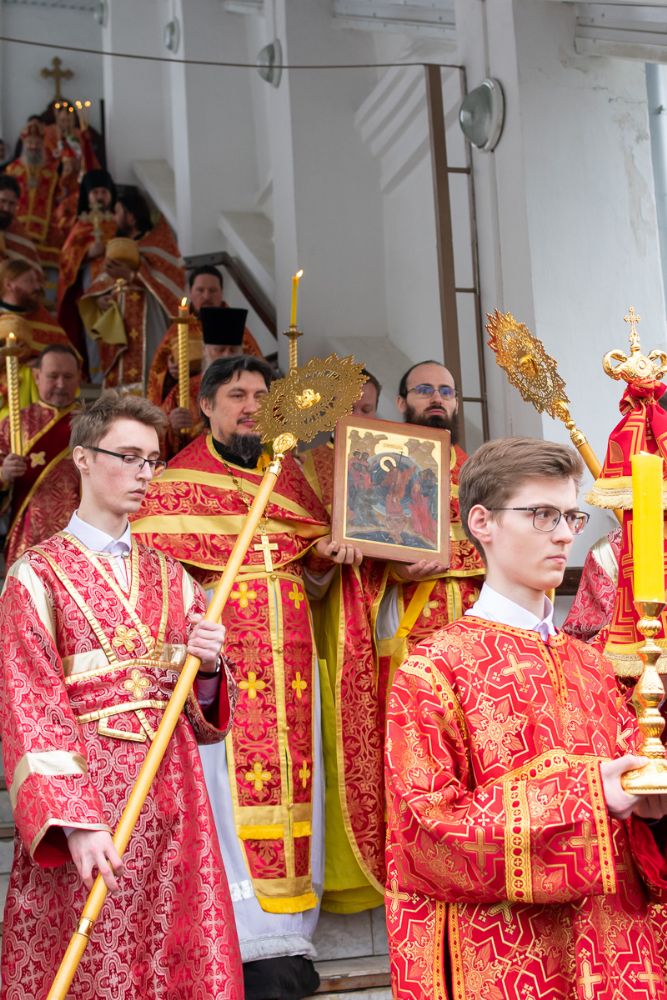 По окончании Литургии прошел Пасхальный крестный ход вокруг собора с чтением Евангелия и кроплением святой водой.