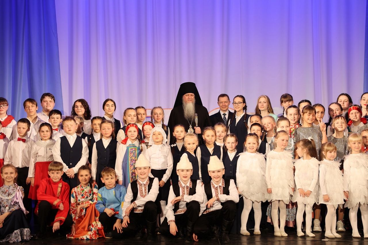 С утра детские хоровые коллективы воскресных школ епархии приняли участие в Божественной литургии архиерейским чином в соборе святителя Николая Мирликийского г. Волжска.