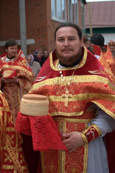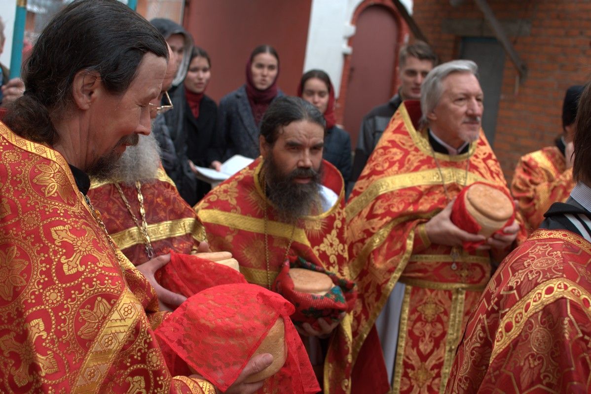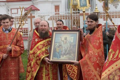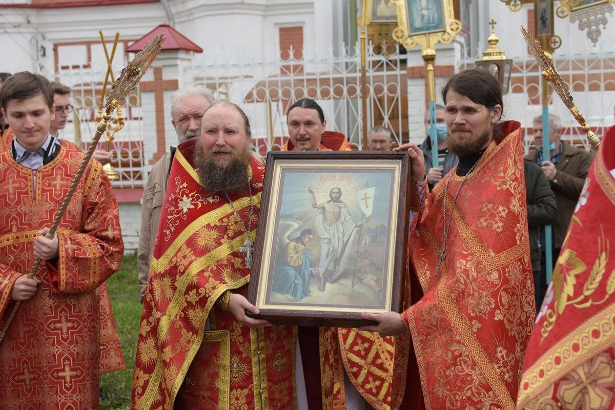 После Литургии прошел крестный ход вокруг храма с чтением Евангелия и кроплением святой водой. Затем Владыка обратился к собравшимся с проповедью: