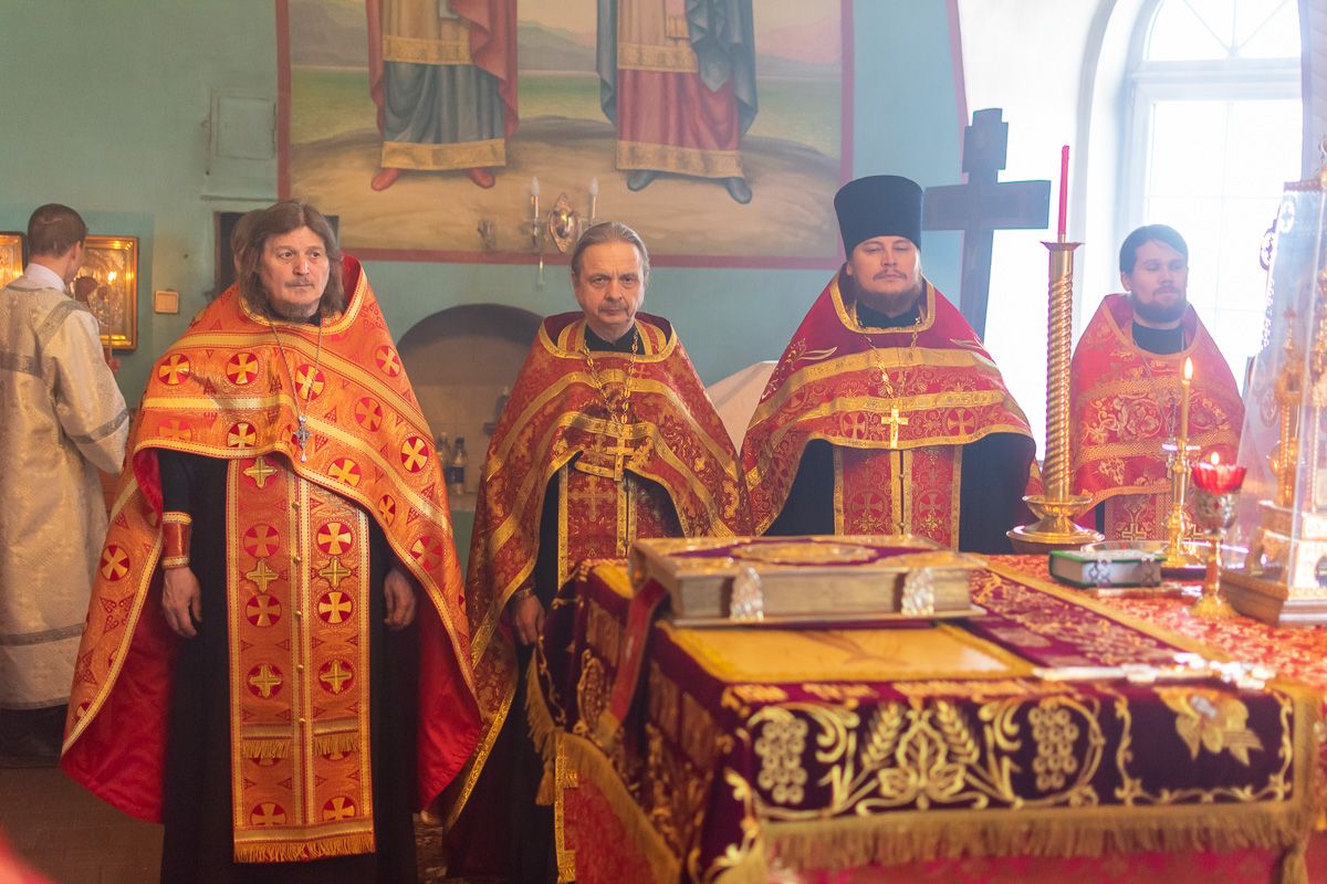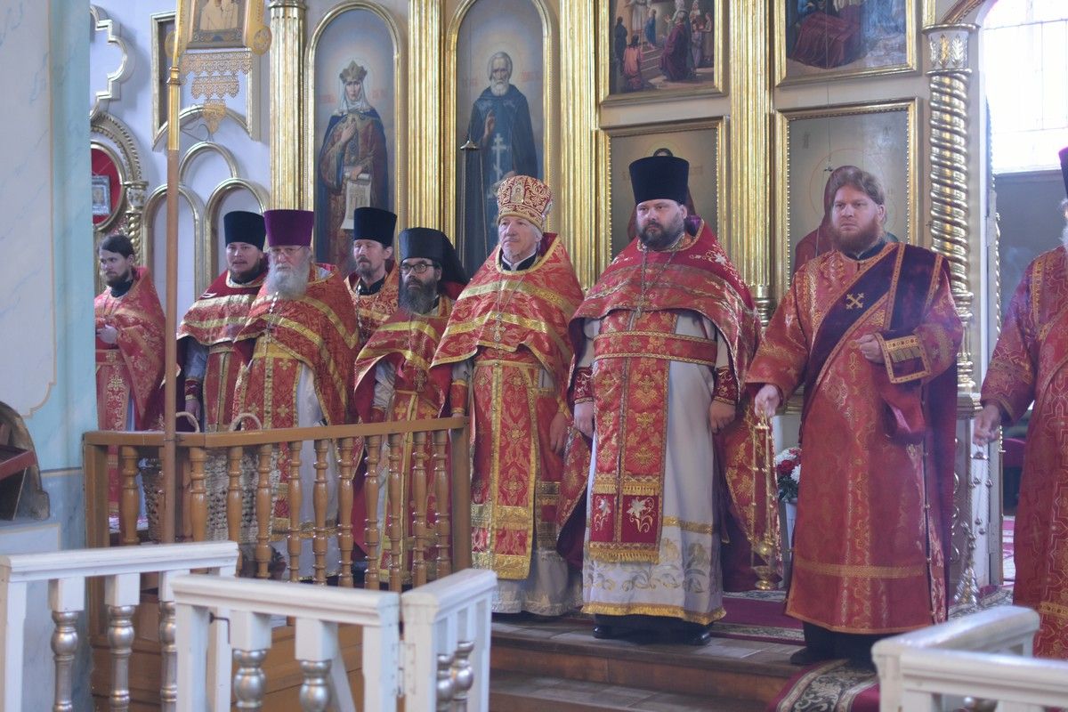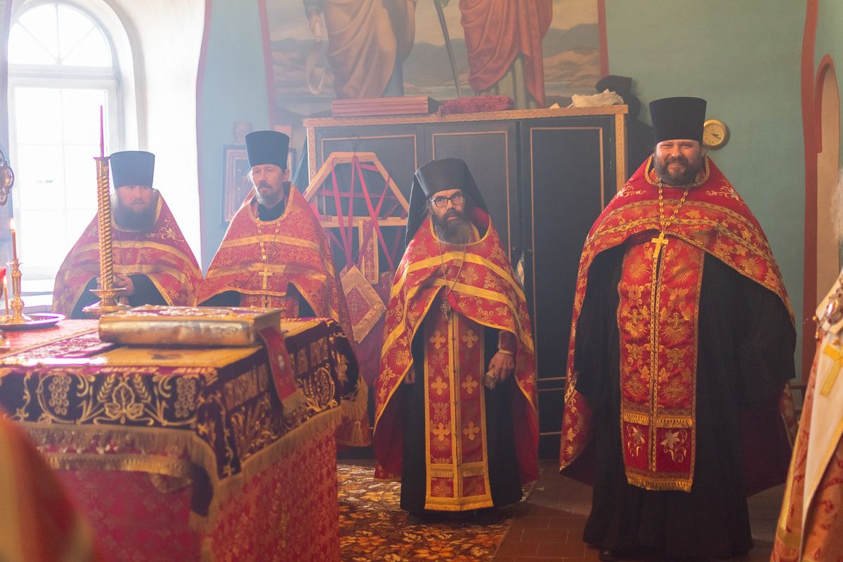 Архипастырю сослужили: секретарь Йошкар-Олинского епархиального управления иеромонах Серафим (Пасанаев), настоятель Смоленского собора иерей Алексий Евсеев, благочинный Горномарийского округа настоятель Свято-Троицкого храма протоиерей Алексий Сущев и духовенство Йошкар-Олинской епархии.