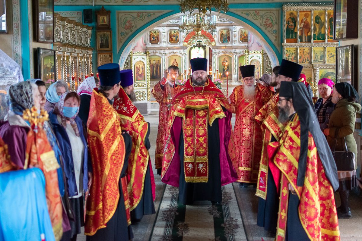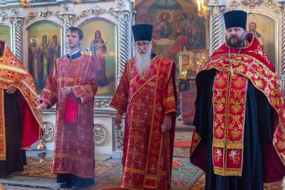 Владыке сослужили секретарь Йошкар-Олинского епархиального управления иеромонах Серафим (Пасанаев), благочинный Горномарийского округа настоятель Свято-Троицкого храма протоиерей Алексий Сущев и духовенство Йошкар-Олинской епархии.