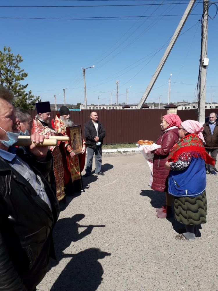 По окончании молебна отец Леонтий торжественно поздравил с праздником Светлой Пасхи и днем памяти святого Победоносца Георгия. Всех угостили праздничным обедом.