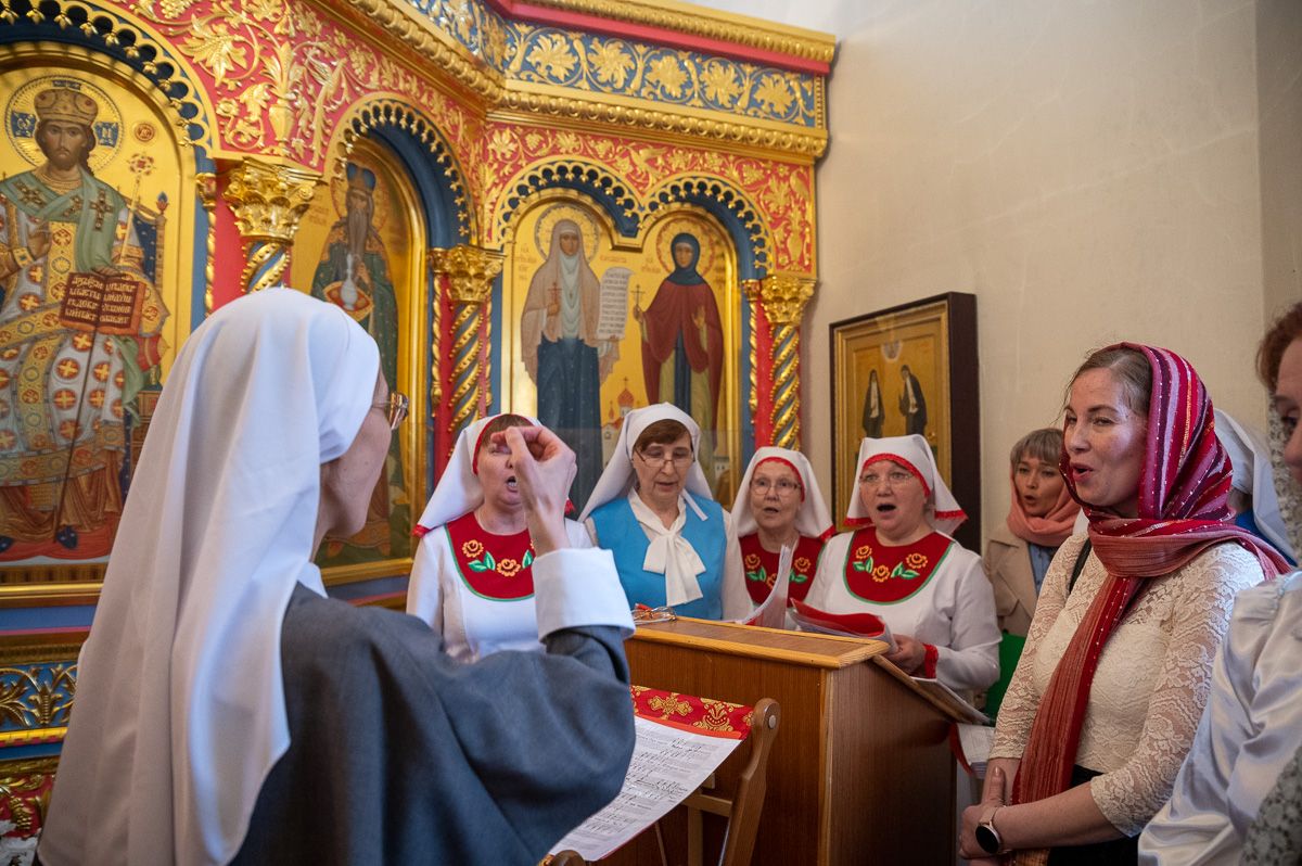 В завершение хор сестер милосердия под управлением регента Ларисы Максимовой – они поздравили зрителей с Воскресением Христовым на трех языках – русском, марийском и сербском.