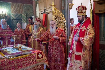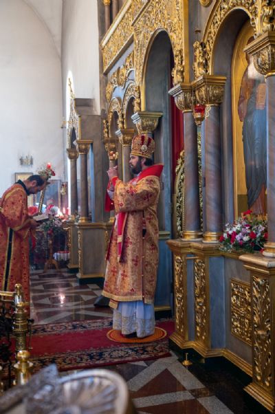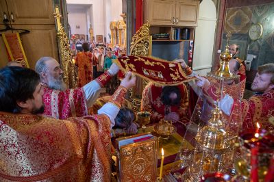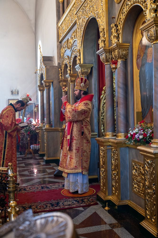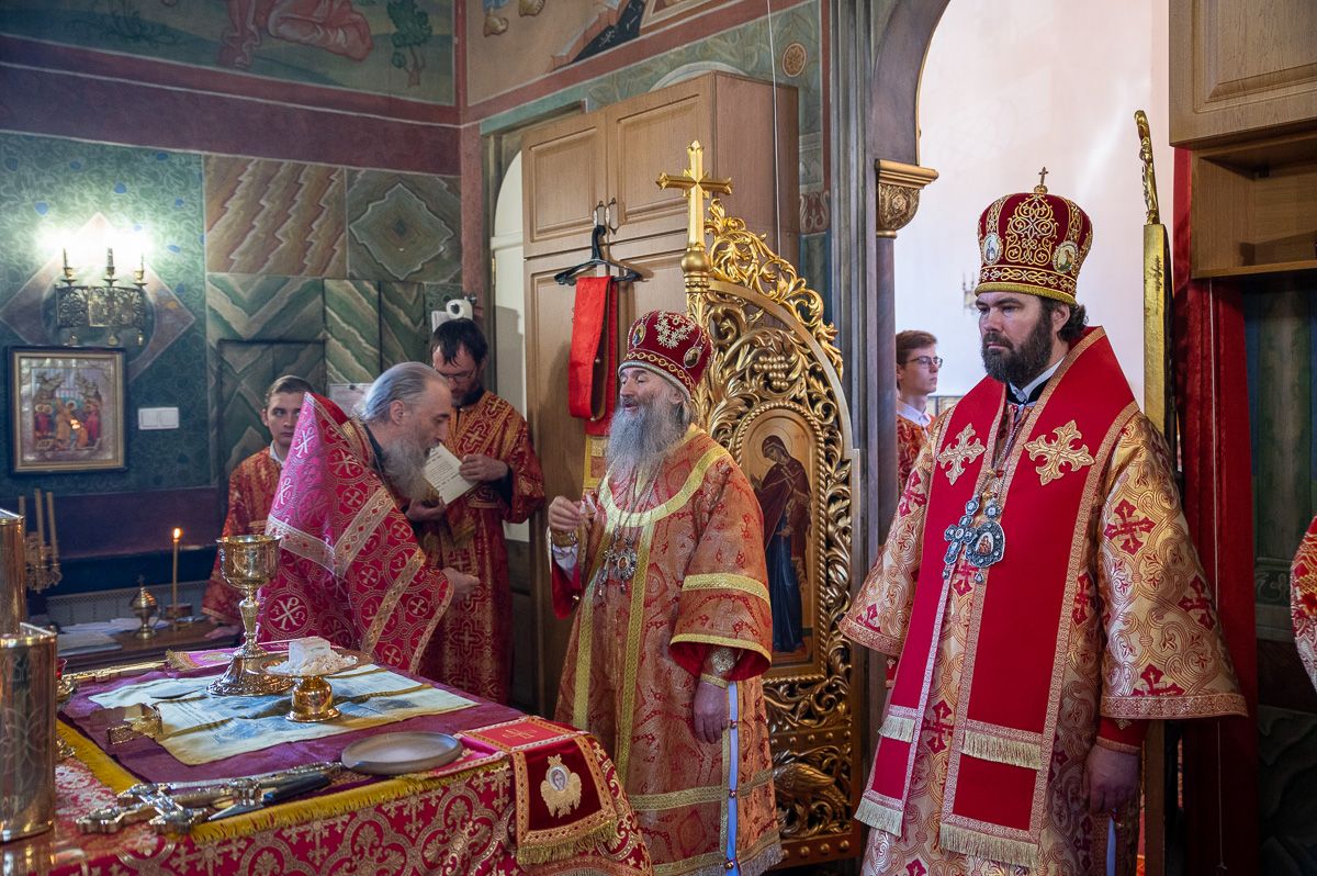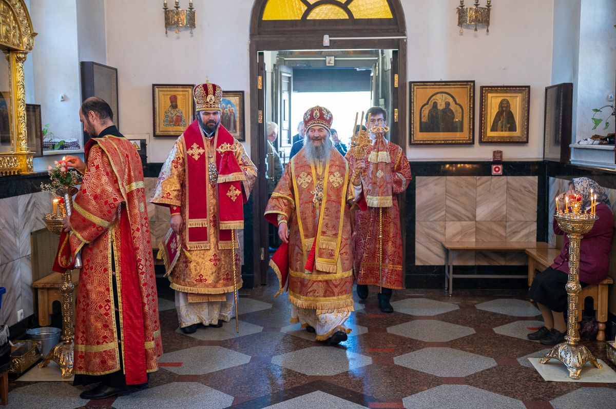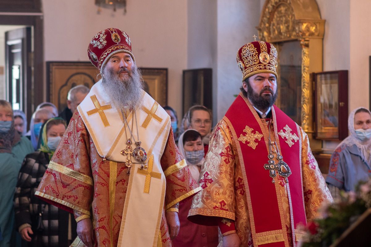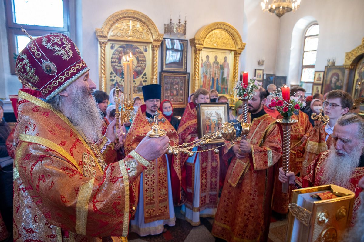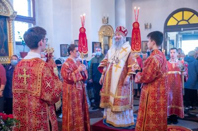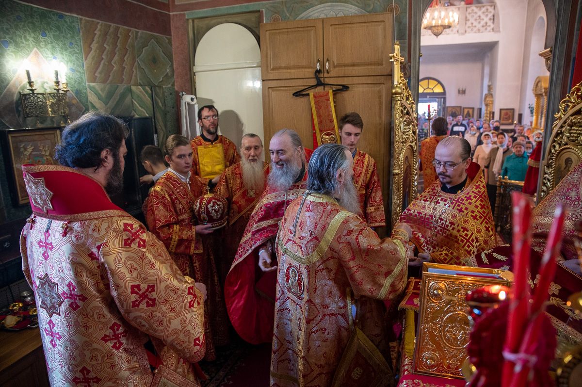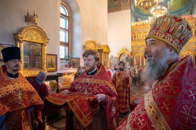 Архиереям сослужили настоятель храма протоиерей Сергий Филонов, клирики храма и протодиакон Михаил Козловский. Песнопения исполнял хор храма под руководством регента Анастасии Филоновой.