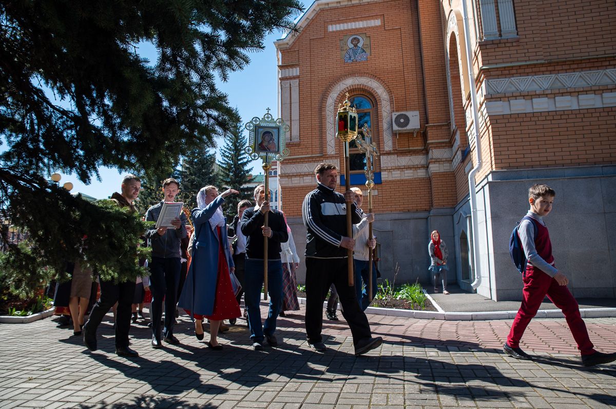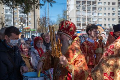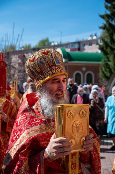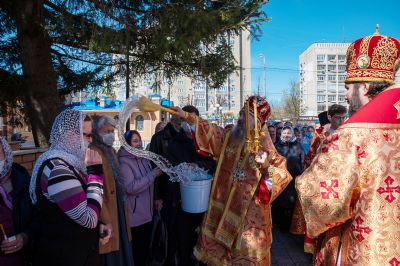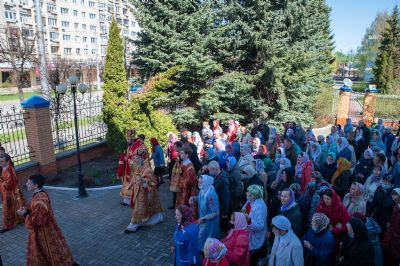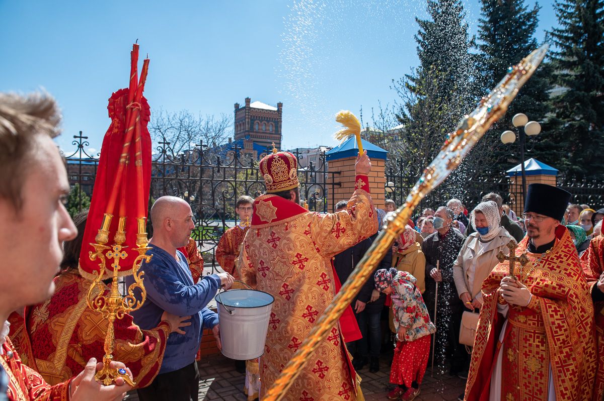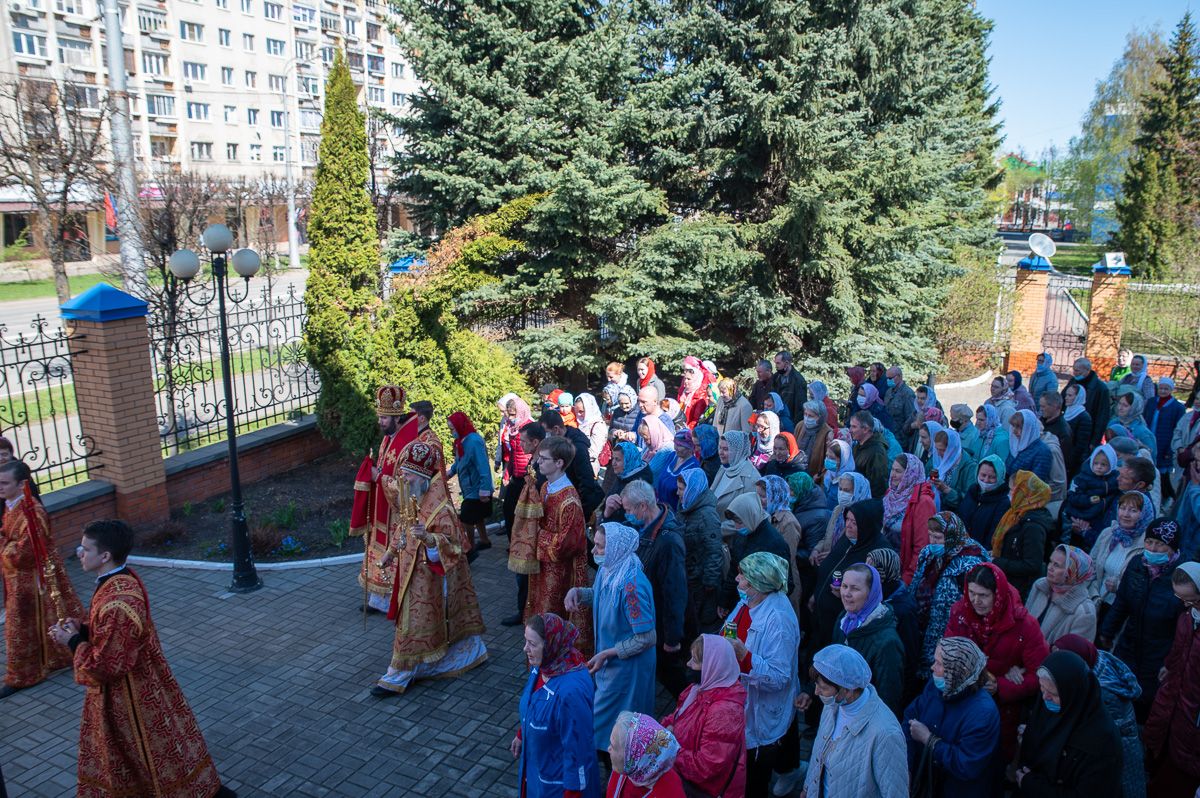 После Литургии был совершен крестный ход вокруг храма со чтением Евангелия и кроплением святой водой. Затем митрополит Иоанн обратился к верующим с праздничным словом: «Христос Воскресе! Неумолкаемо вся седмица исполнялась этим великим благовестом, наполняющим каждого радостью и ликованием. Ведь если Христос воскрес, то и все мы воистину воскреснем для вечной духовной радости! Эта седмица для нас после прошлого года была великим утешением. Каждый день утром и вечером народ спешил в храмы, где происходила невидимая духовная встреча, когда Воскресший Христос обновлял наши души и уверял, как апостолов, в истинности Своего Воскресения.
