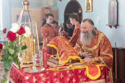 За Литургией архипастырю сослужили клирик Вознесенского собора иерей Димитрий Копылов и протодиакон Михаил Козловский.