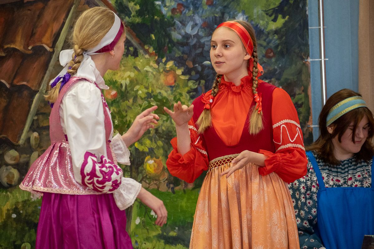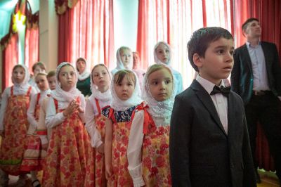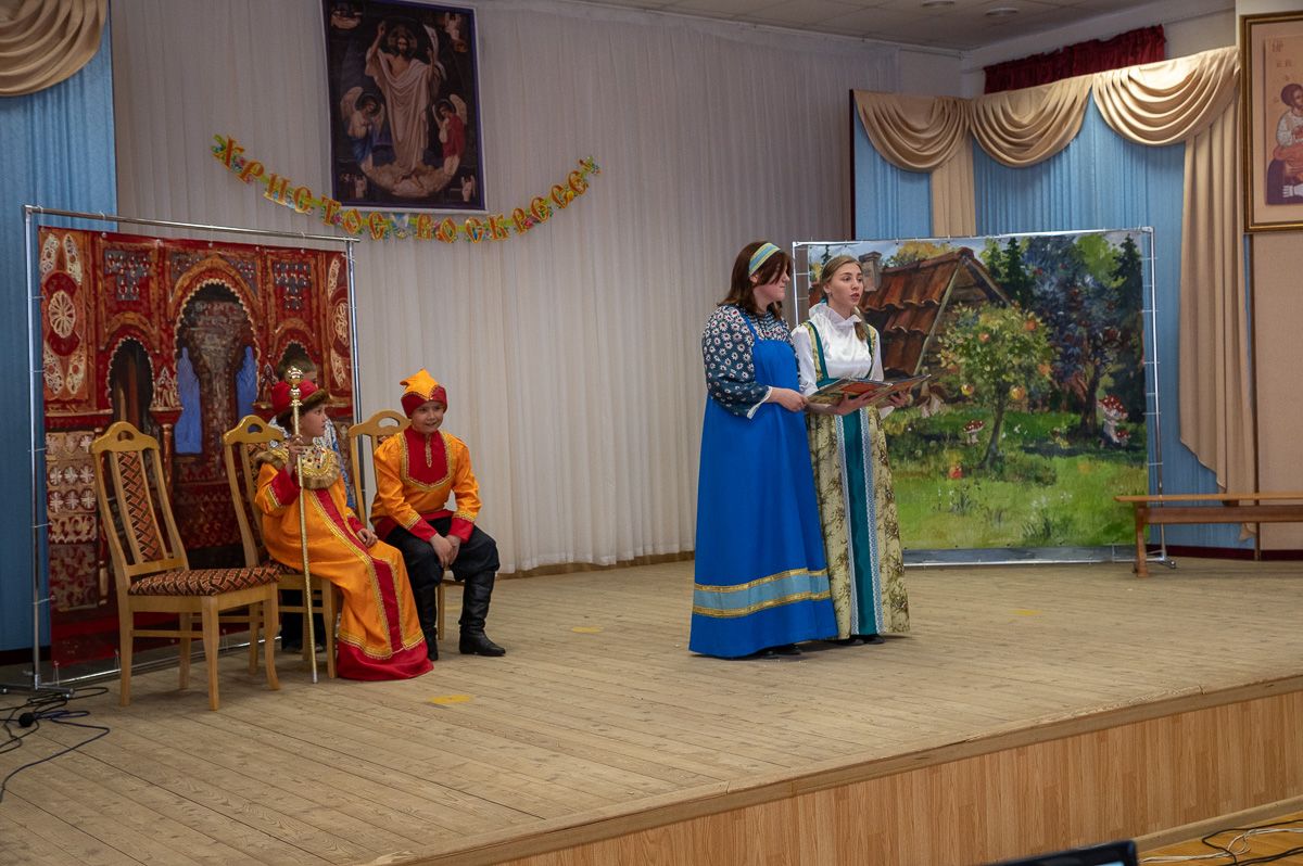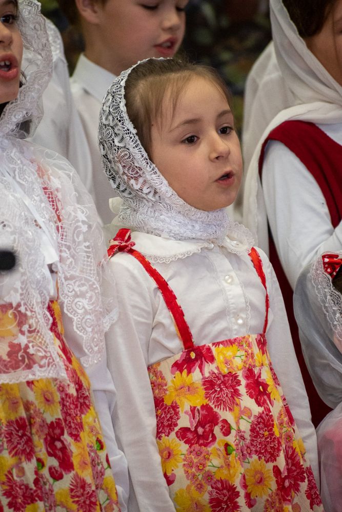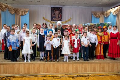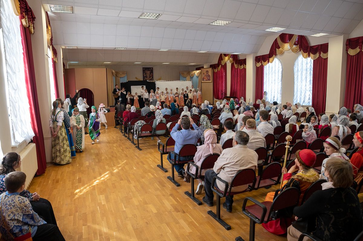 Зал был переполнен – воспитанники, их родители и бабушки, друзья, приглашенные гости и все желающие! Обе воскресные школы тщательно подготовили насыщенные праздничные программы – стихи, песни, музыкальные и танцевальные номера. Учащиеся Троицкой школы по традиции представили теневой спектакль, а воспитанники школы смч. Леонида – сказочную постановку "Серебряный сундук и золотое яичко". Зрители вознаграждали юных артистов бурными аплодисментами.