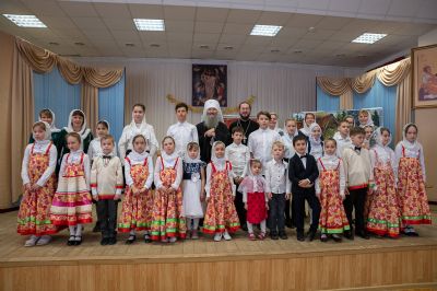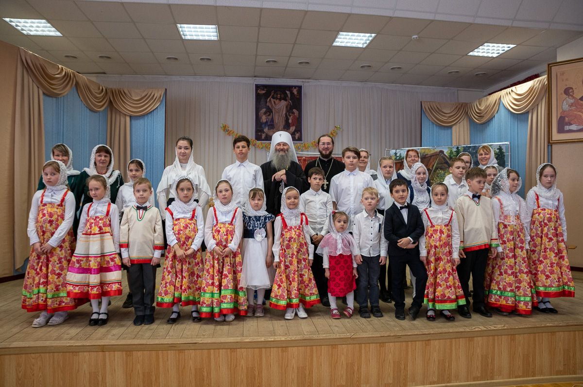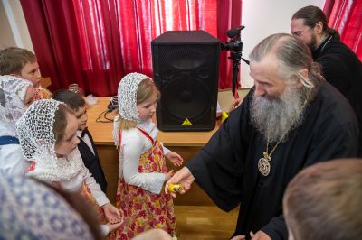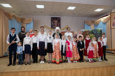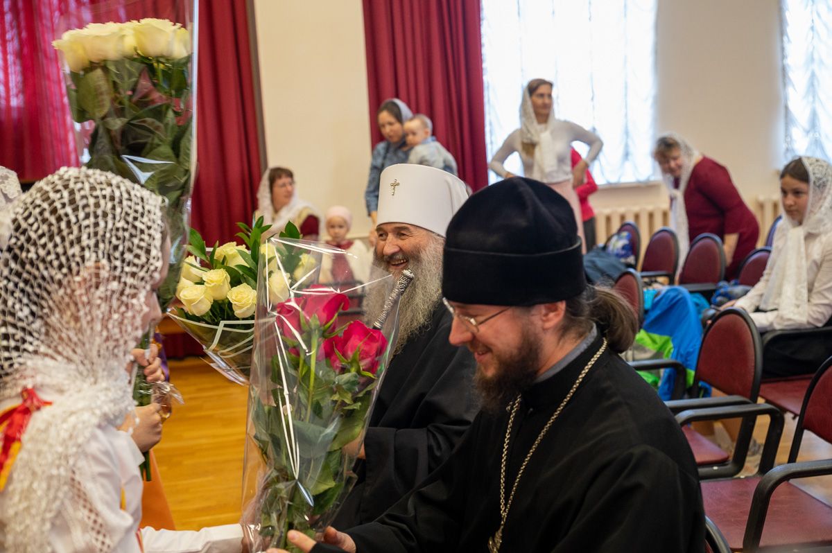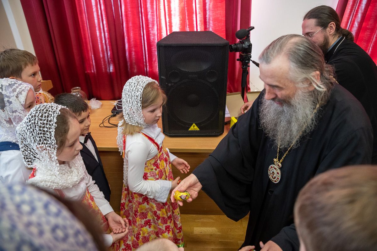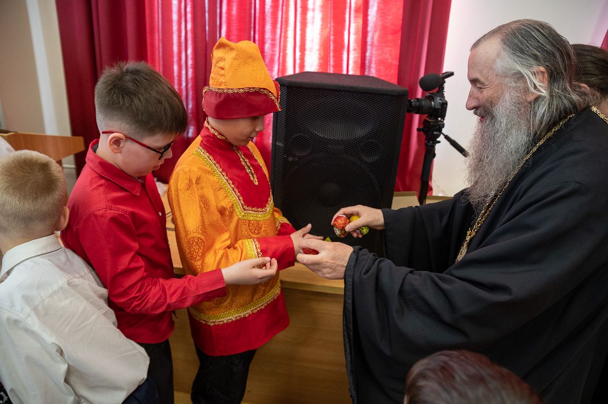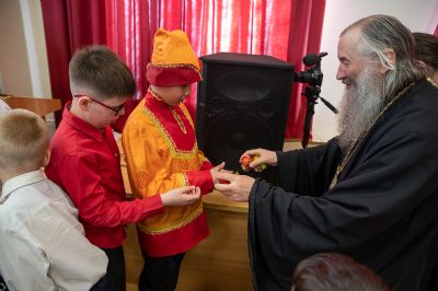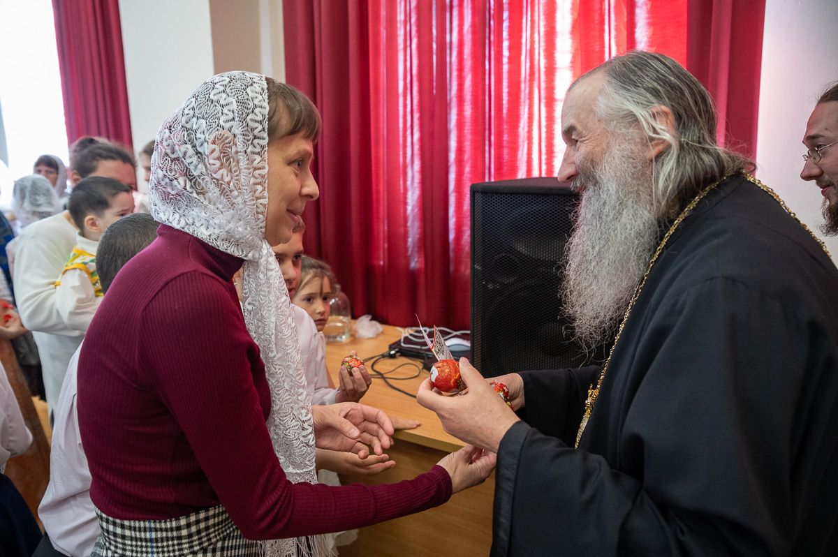 После концертной программы Владыка поздравил детей и учителей с праздником Светлой Пасхи и подарил сладкие подарки.