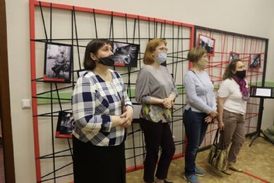 Далее старший научный сотрудник отдела истории музея Евгений Грознов провел для собравшихся интересную и очень познавательную экскурсию. Выставка знакомит с ключевыми битвами войны и судьбами их участников – верующих Марийского края. Представлены инсталляции, изображающие трагические моменты битвы за Москву, Сталинградской битвы, форсирования Днепра и Берлинской наступательной операции.
