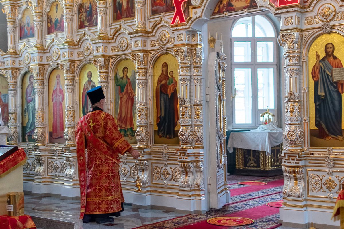 Архипастырю сослужили секретарь Йошкар-Олинского епархиального управления иеромонах Серафим (Пасанаев), настоятель собора иерей Алексий Кирюшкин, клирики собора и протодиакон Михаил Козловский. Песнопения исполнял хор собора под управлением Алисы Вылегжаниной.