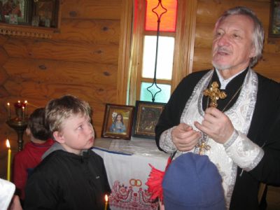 По окончании рассказа отец Николай отслужил молебен святому Димитрию Солунскому, окропил всех святой водой. Сфотографировавшись около часовни, все отправились на небольшую полянку, где поиграли в развлекательные игры, посоревновались в ловкости, а затем пообщались за чаем с бутербродами.