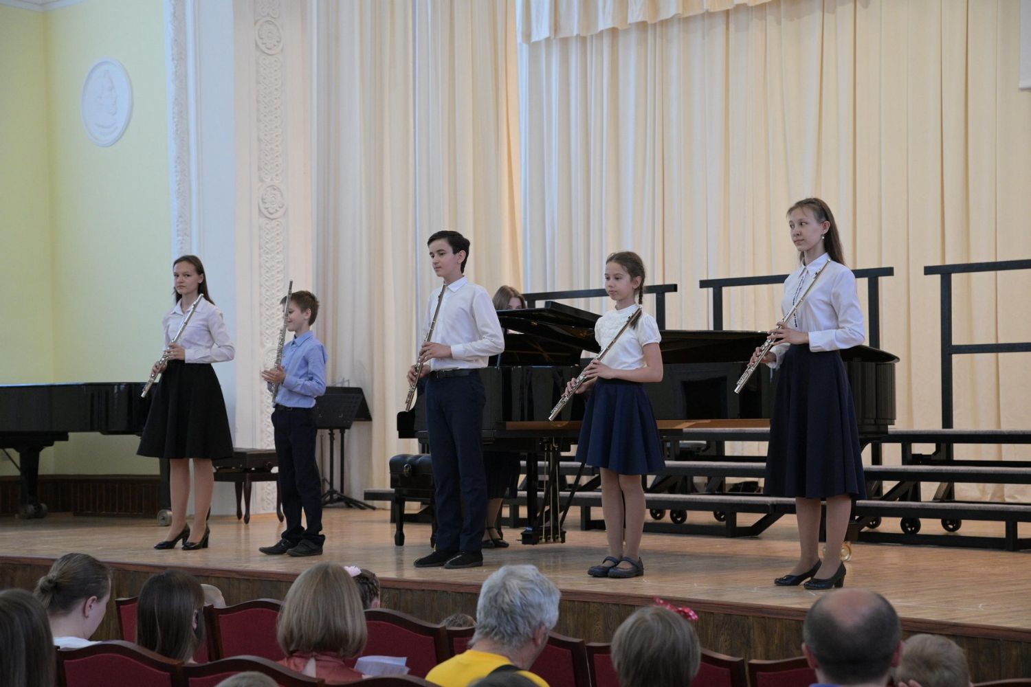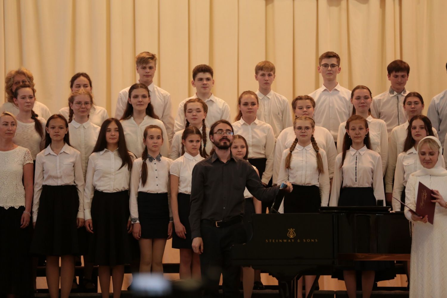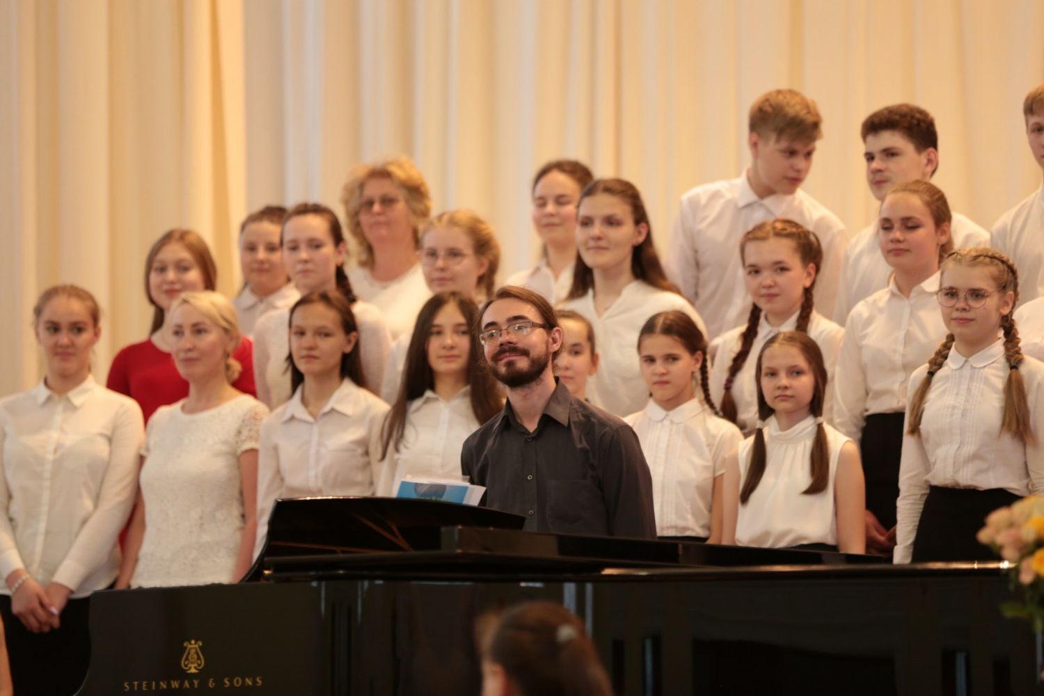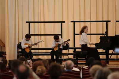 Далее началась музыкальная программа – свои выступления представили солисты, ансамбли и хоровые коллективы в составе учащихся детской школы искусств, студентов и преподавателей факультета академической музыки колледжа. Все музыкальные номера сопровождались цитатами из проповедей святых отцов и старцев о Воскресении Христовом, соединяя программу в единое целое.