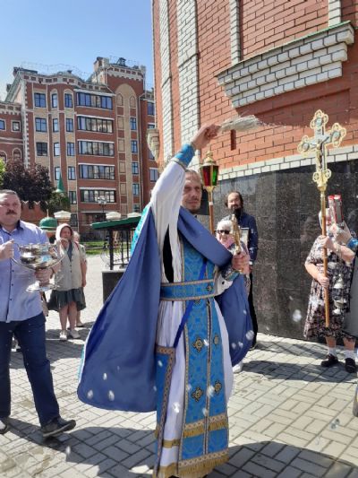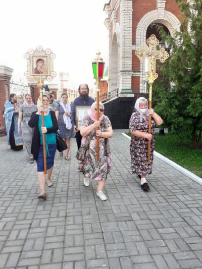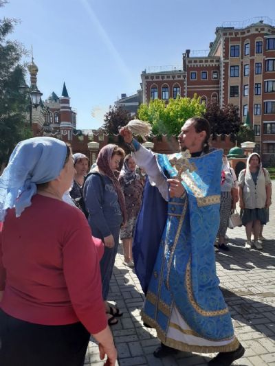 После Литургии вокруг храма прошел крестный ход со чтением Евангелия и кроплением святой водой. Отметим, что этот традиционный ход проходит обычно по всей набережной реки Малая Кокшага, но теперь в связи с пандемией пришлось сократить его маршрут.