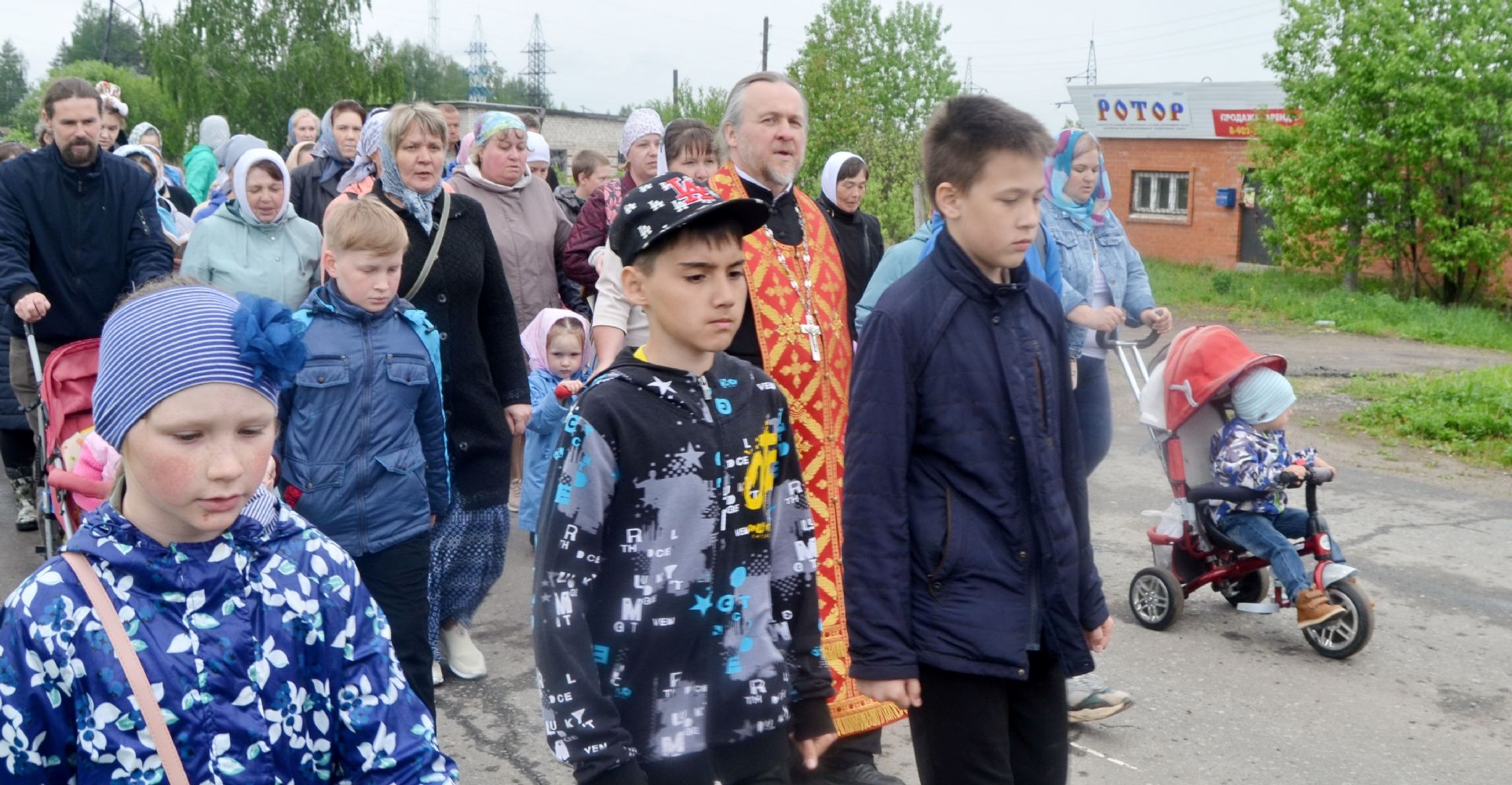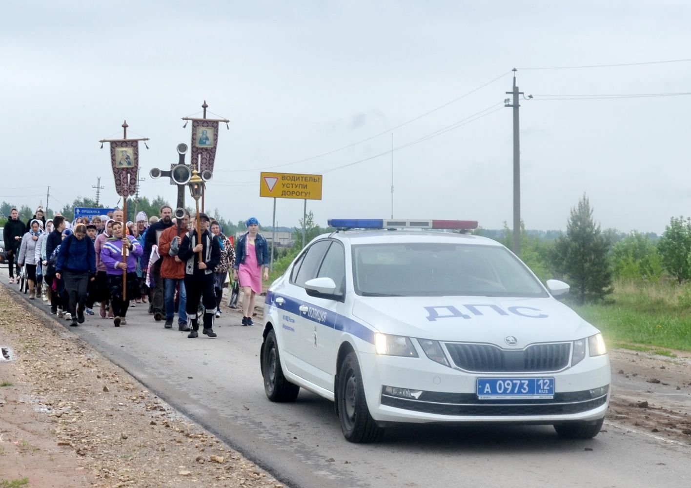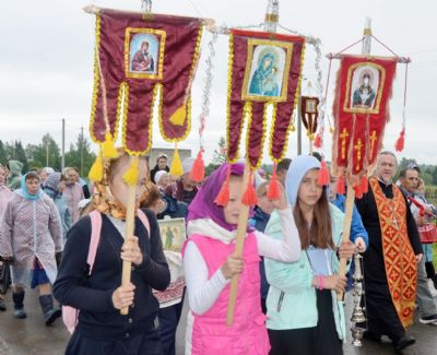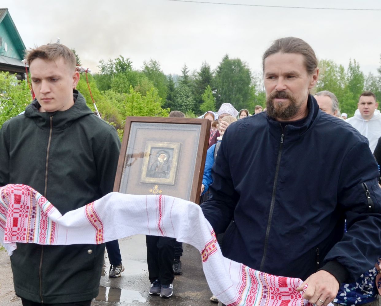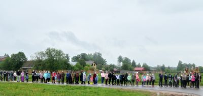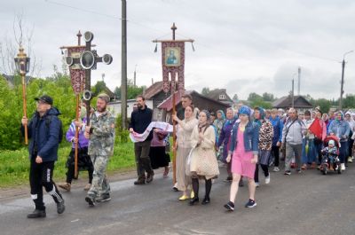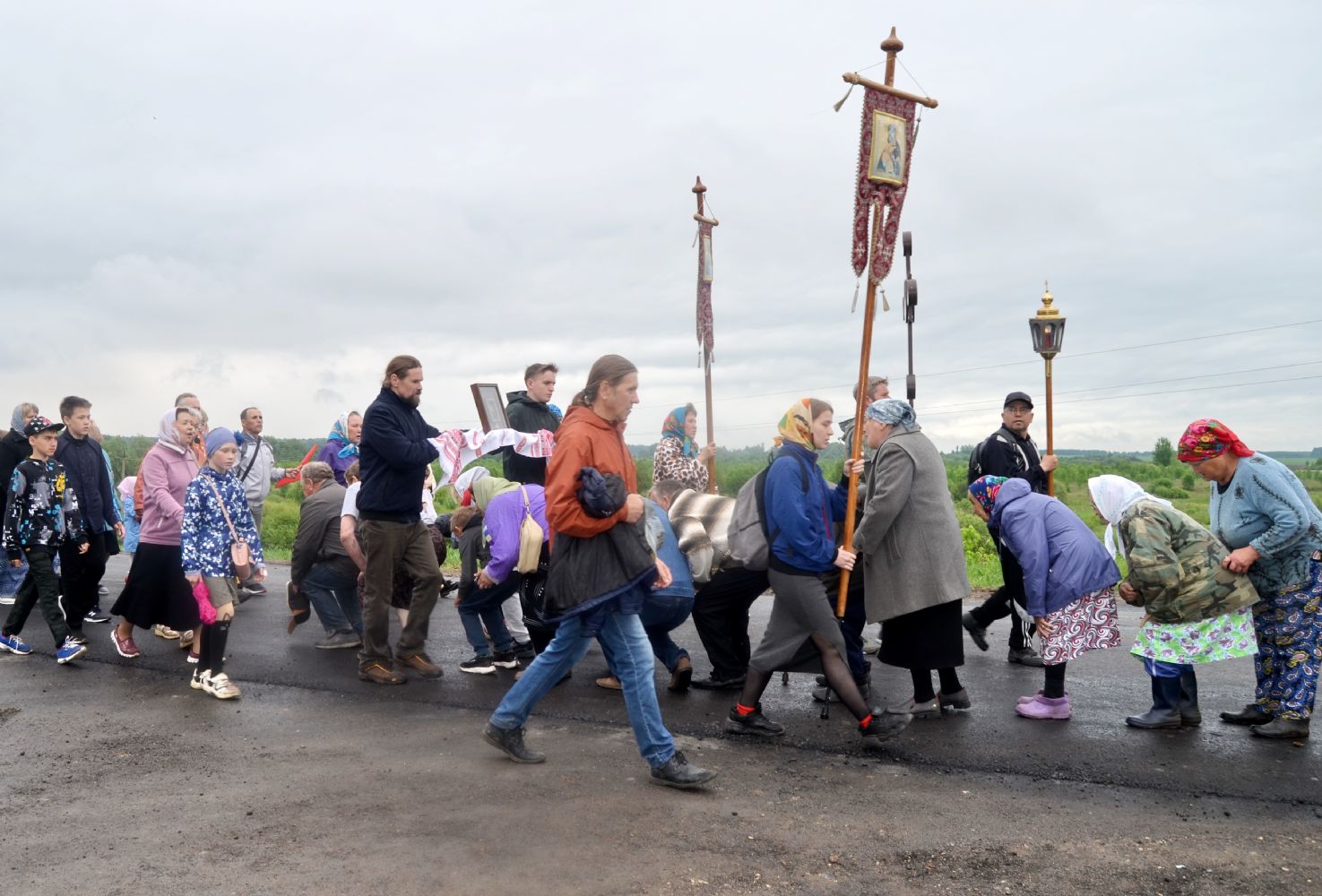 Как всегда, на подходе к деревне оршанцев встретил крестный ход из местных школьников с малыми хоругвями и взрослых жителей. Дальнейший путь проходил сообща. Большеоршинские крестоходцы, кроме того, успели пройти с храмовой иконой святого и по всем улицам родной деревни.