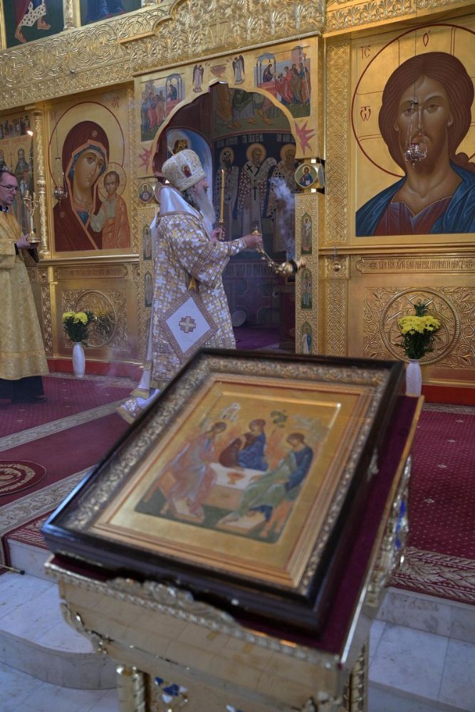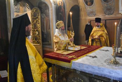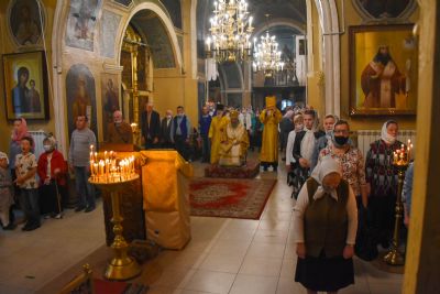 21 мая вечером митрополит Иоанн возглавил Всенощное бдение в храме Пресвятой Троицы г. Йошкар-Ола, нижний придел которого освящен в честь святителя Николая Мирлийского.