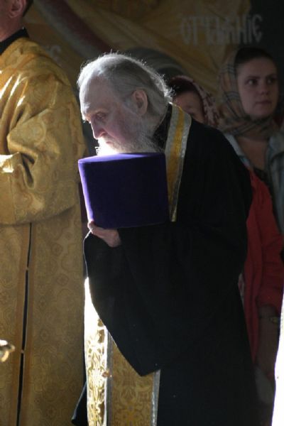 После крестного хода вокруг храма архипастырь обратился к собравшимся с проповедью: