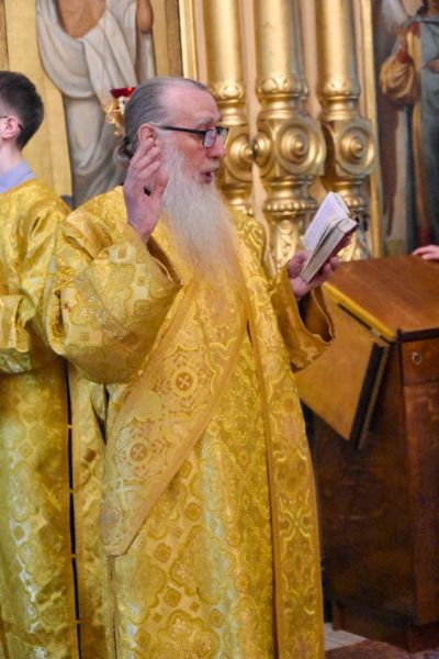 Митрополиту сослужили: секретарь Йошкар-Олинского епархиального управления иеромонах Серафим (Пасанаев), благочинный Йошкар-Олинского церковного округа протоиерей Андрей Норкин, настоятель храма протоиерей Евгений Кутырев, клирики Вознесенского храма и протодиакон Михаил Козловский.