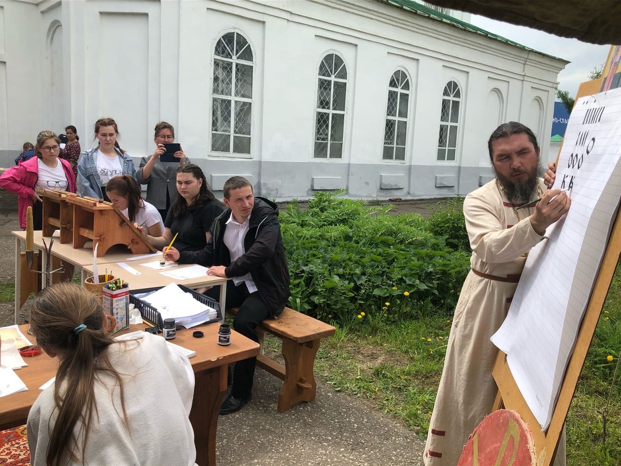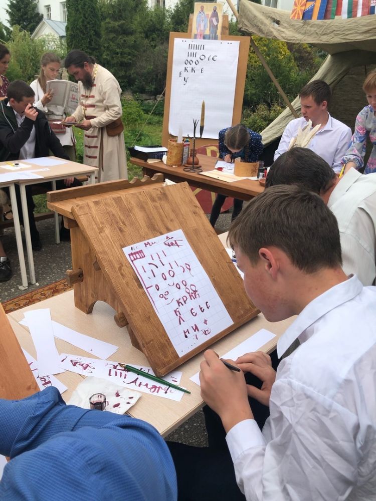 С приветственным словом к собравшимся обратился настоятель храма преподобномученика Андрея Критского протоиерей Сергий Бажанов. Далее школьники из Старого Торъяла ознакомили зрителей с житием святых равноапостольных Кирилла и Мефодия – создателей славянской азбуки.