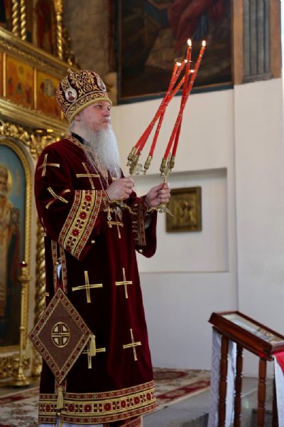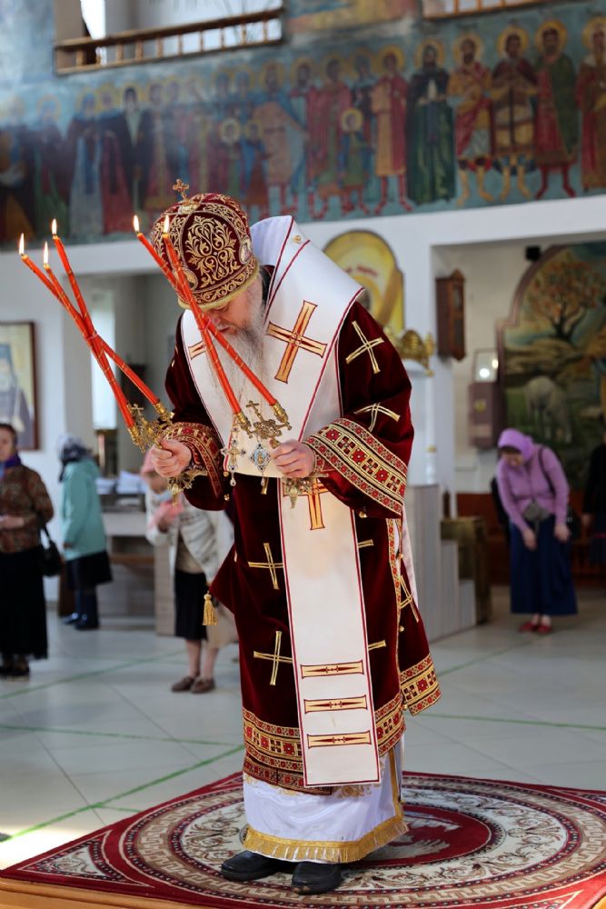 Его Преосвященству сослужили клирики собора, песнопения исполнял архиерейский хор под управлением Любови Михеевой.