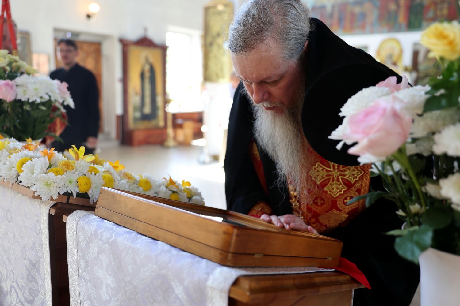 После Литургии владыка Феофан обратился к верующим с архипастырским словом, рассказав о житии святых равноапостольных Кирилла и Мефодия: «Они родились в городе Салоники в Греции, в знатной благочестивой семье. Мефодий был самым старшим из семерых братьев, а Константин, который впоследствии принял монашество с именем Кирилл, – самым младшим.