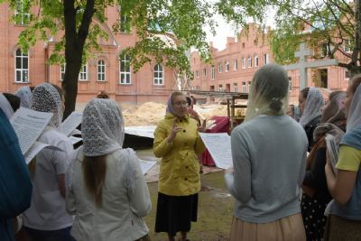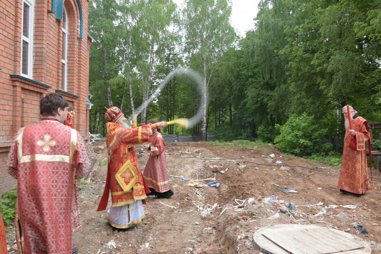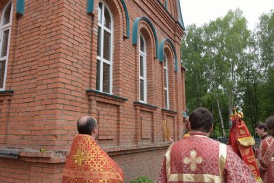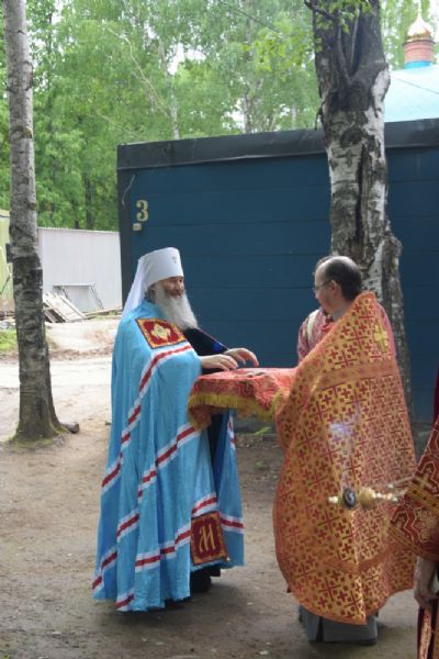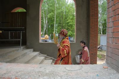 За вечерней митрополит Иоанн и иерей Алексий читали акафист Воскресению Христову. После чтения акафиста вокруг строящегося храма прошел крестный ход. Архипастырь покропил святой водой прихожан, стены строящегося храма снаружи и внутри.