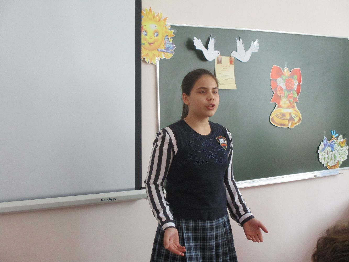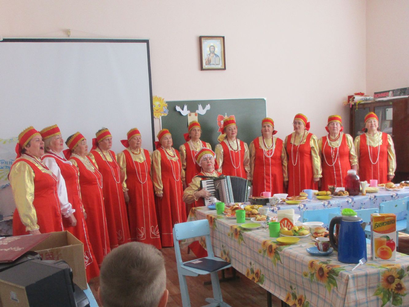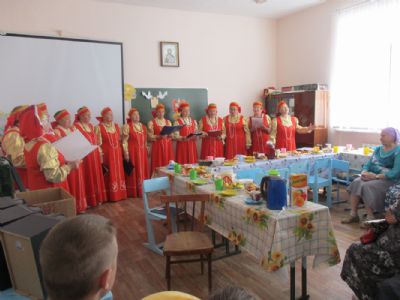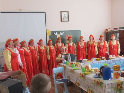 На праздник были приглашены гости – народный хор ветеранов «Радуга». Они были в ярких русских национальных костюмах, что внесло дополнительный эмоциональный градус в атмосферу праздника. Они читали стихи, пели песни о Родине, которые подхватывались зрителями, – получилось просто замечательно. Воспитанники детской воскресной школы также выступили со стихами.
