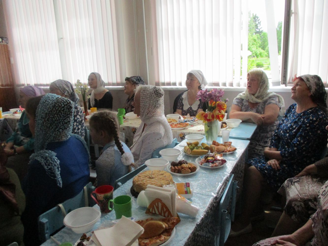 Праздник продолжился чаепитием, за которым в ходе общения были спланированы некоторые совместные мероприятия: оформление клумбы у молебного дома, паломническая поездка. В завершение все вместе сфотографировались на память.
