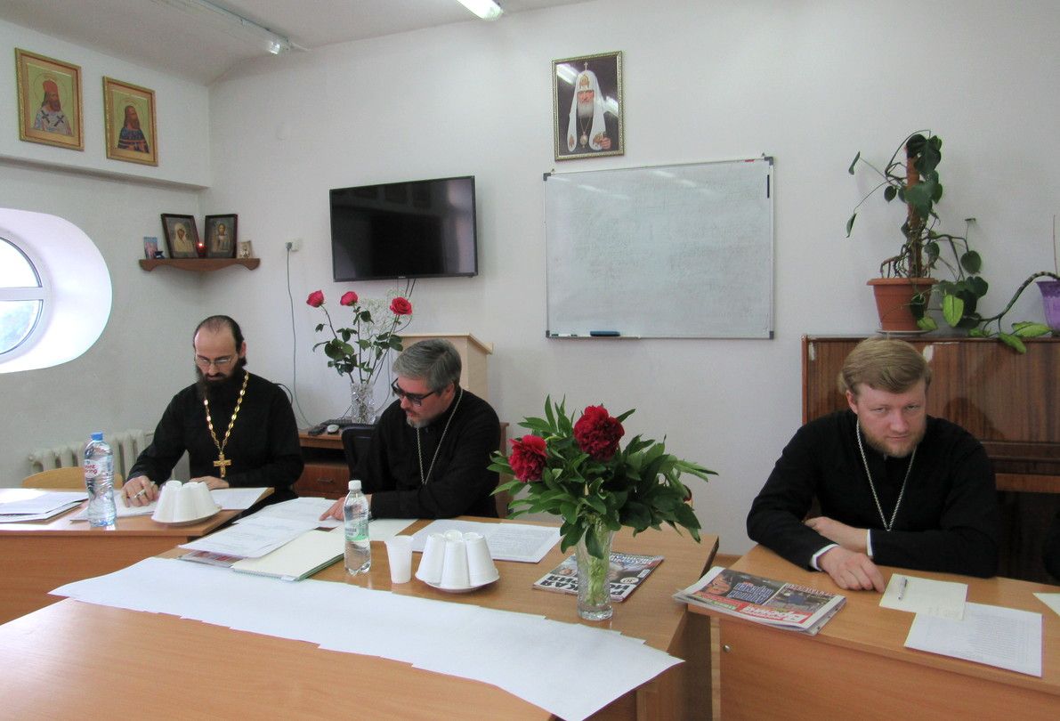 Принимали итоговый выпускной квалификационный экзамен руководитель Православных образовательных курсов иерей Александр Козлов, преподаватели: иерей Иоанн Кристев, иерей Димитрий Дьяков, иерей Вячеслав Булычев, кандидат исторических наук Левенштейн Олег Генрихович, кандидат богословия Крикунов Василий Викторович и завуч курсов Сарынина Виктория Яковлевна.
