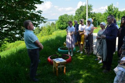 Паломники внимательно слушали трогательную историю Свято-Троицкого храма и села Троицкий Посад, которую поведал краевед Михаил Владимирович Муругов – историк, учитель, знаток здешних мест. Он рассказал о событиях, повлиявших на развитие села, о строительстве, разрушении и восстановлении храма, поведал предания прежних лет, рассказал о купечестве, культуре, известных людях, посетивших здешние места.