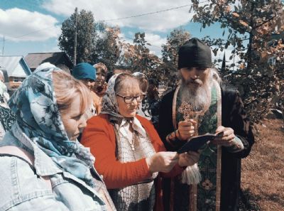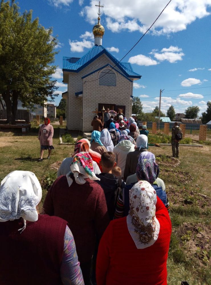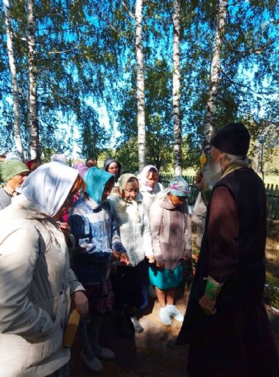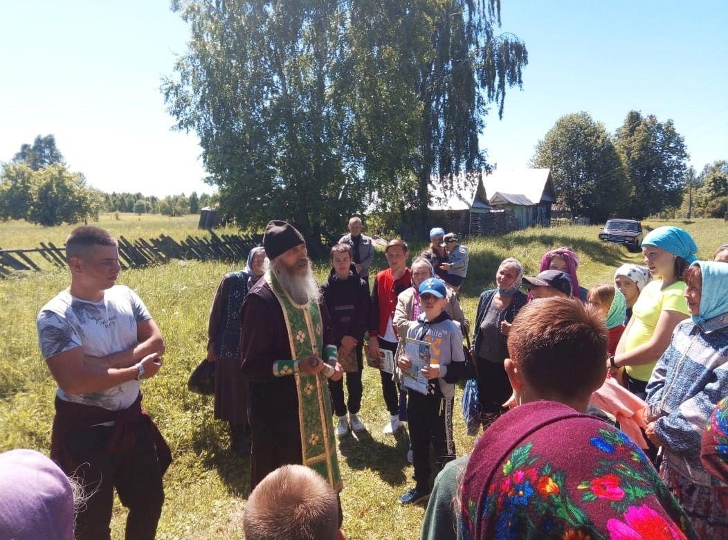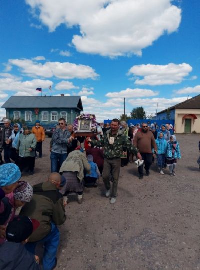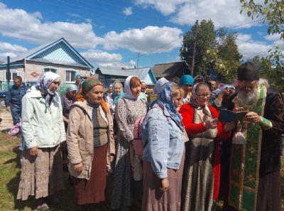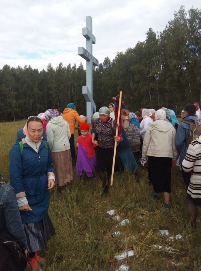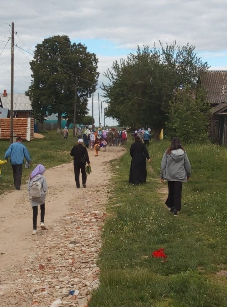 Затем крестный ход во главе с духовными окормителями – протоиереем Николаем Чузаевым, иереем Евгением Шамаевым и иереем Игорем Сапаевым – двинулся дальше, преодолев за день путь до с. Кӱчык-Эҥер. Утром следующего дня после молебна Пресвятой Богородице крестоходцы направились по маршруту в п. Ильинский.