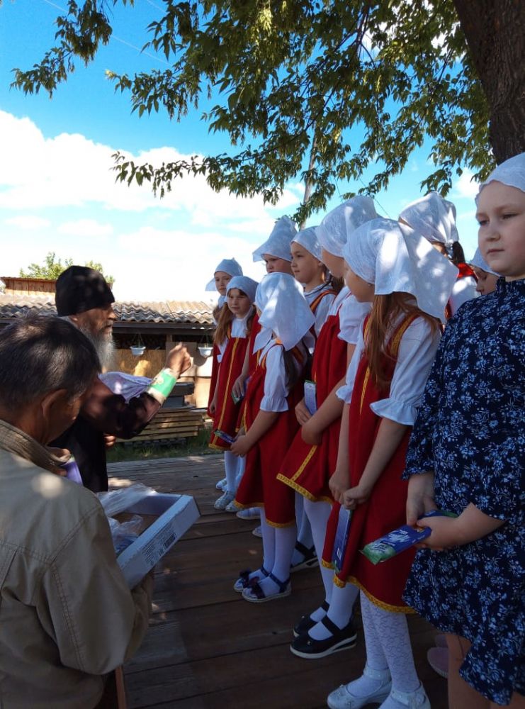 2 июня утром в Покровском храме п. Октябрьский Моркинского района была совершена Божественная литургия, после которой дети – жители поселка устроили для крестоходцев и прихожан концерт.