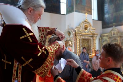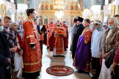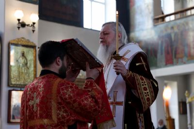 Архипастырю сослужило духовенство собора. Песнопения исполнял архиерейский хор под управлением Любови Михеевой.