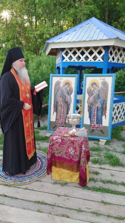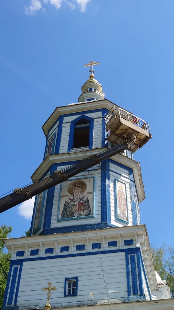 6 июня епископ Волжский и Сернурский Феофан совершил чин освящения новых икон, после чего они были подняты на колокольню.