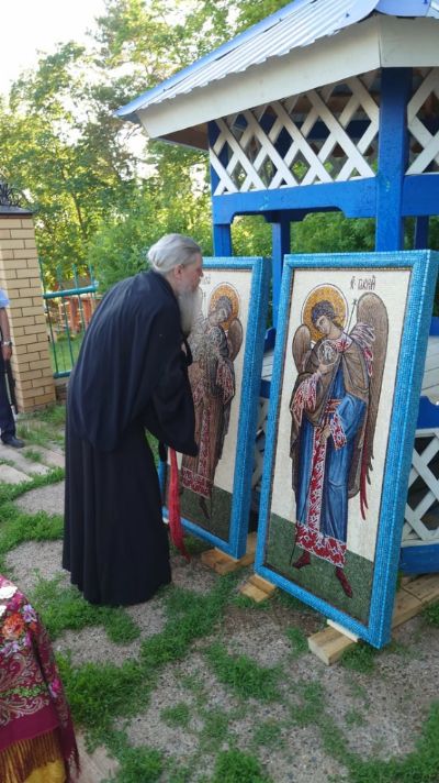В этом радостном событии участвовал руководитель московской художественной студии «Возрождение», член Союза художников России Алексей Федоровский, автор мозаичных икон архангелов Михаила и Гавриила, изготовленных из натурального камня и смальты.