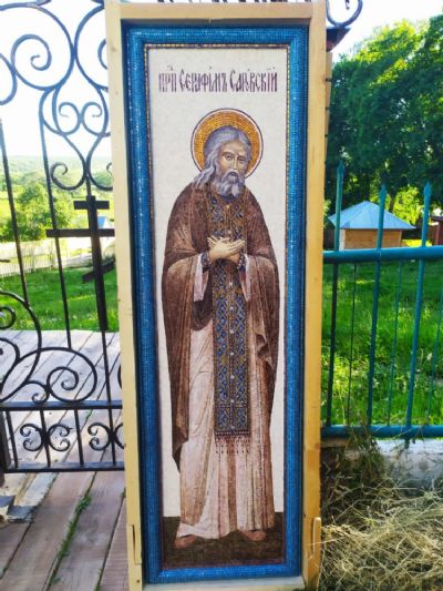 К слову, год назад там же, в художественной мастерской студии «Возрождение», были изготовлены мозаичные иконы святителя Гурия архиепископа Казанского, святого праведного Иоанна Кронштадтского и святого преподобного Серафима Саровского, в честь которого освящен источник вблизи храма. Они украшают храм с внешней стороны колокольни.