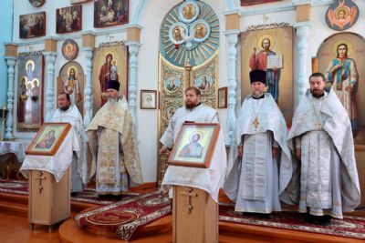 Также владыка Феофан рассказал об иконе Божией Матери «Споручница грешных», празднование которой Церковь совершает в этот день. Этот образ особенно прославился в середине XIX века. Древняя икона «Споручница грешных» находилась в старой часовне Никольского Одрина монастыря Орловской губернии. Из-за ветхости своей она была несколько забыта людьми. И вот в 1843 году многим людям в сонном видении было открыто, что эта икона имеет от Бога особую благодать, и все, кто будут молиться пред ней, чудесным образом будут избавлены от недугов и от бедствий в жизни.