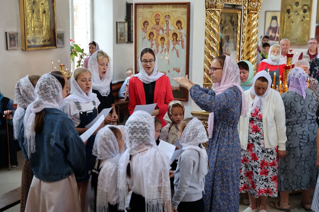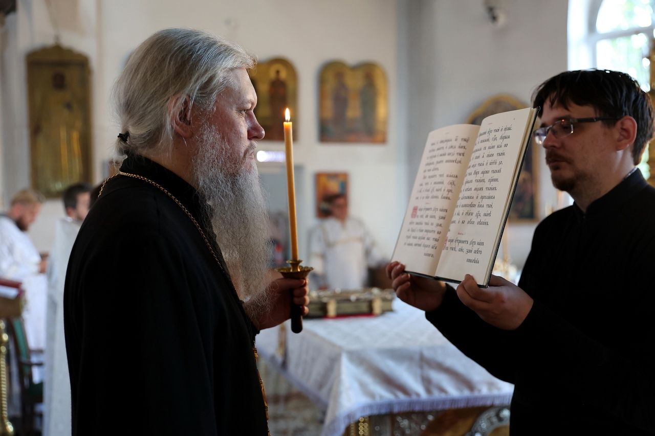 Его Преосвященству сослужили клирики собора. Песнопения исполняли архиерейский хор и детско-юношеский хор.