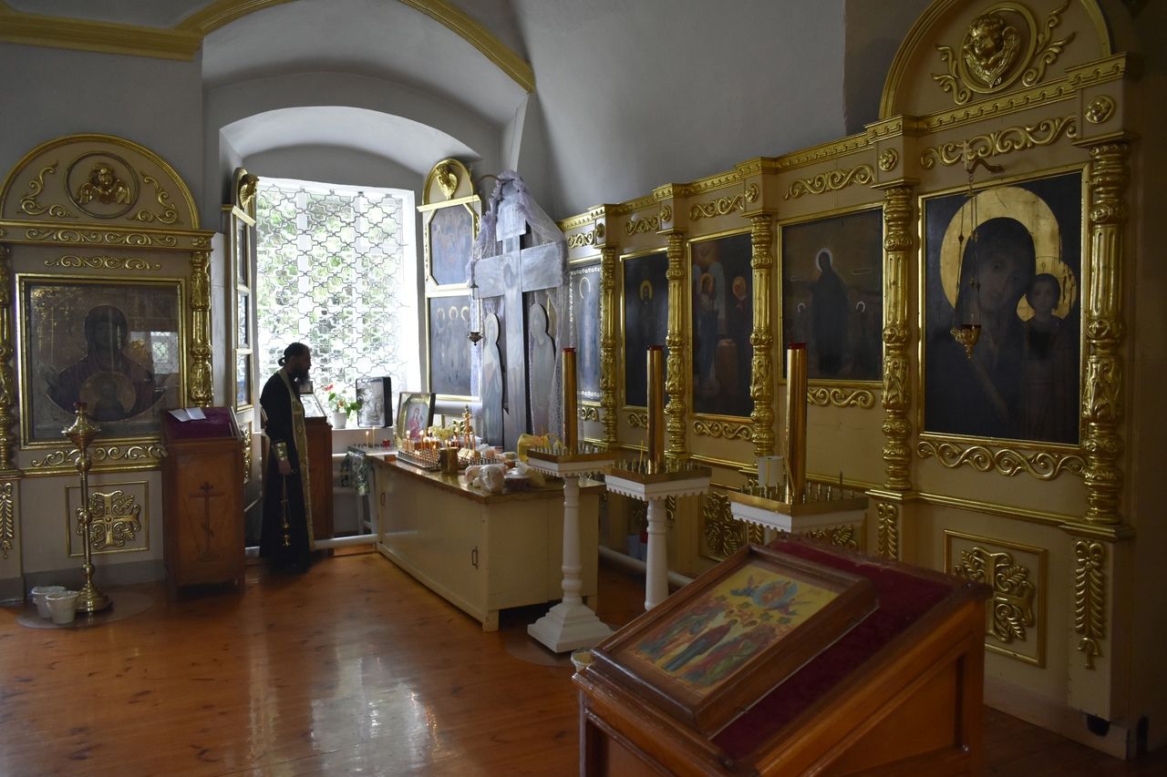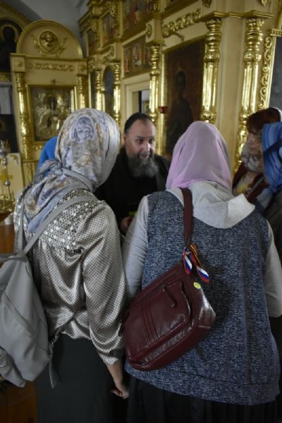 Капризная погода встретила нас ливневым дождем. Пока он не закончился, гостеприимный батюшка Василий провел для нас экскурсию по храму, поведал историю монастыря, немного рассказал о себе. Помимо восстановления монастыря, отец Василий много времени уделяет нравственно-патриотическому воспитанию подрастающего поколения.