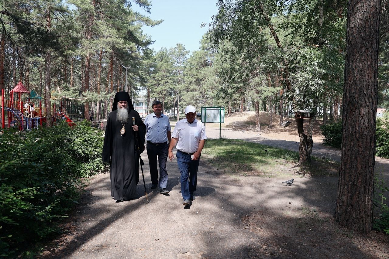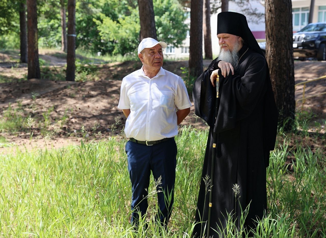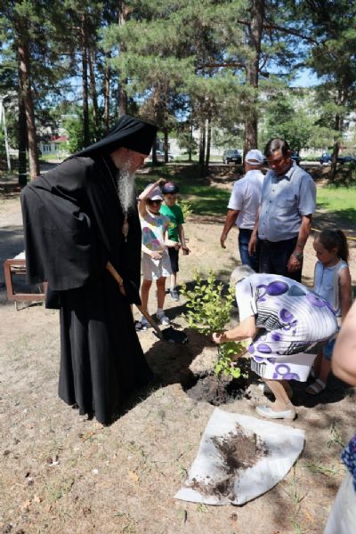 Далее владыка Феофан совместно с благоустроителем парковой зоны Ринатом Биктимировым, детьми и родителями, проводящими свой досуг в этом красивом месте, принял участие в посадке деревьев и кустарников в зеленой зоне парка. Надеемся, что саженцы приживутся и в скором времени порадуют людей цветами и плодами, напоминая участникам и организаторам этого доброго дела о встрече с архипастырем.